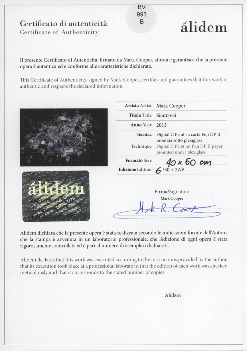 DIGITAL C PRINT SU CARTA FUJI DP II, MONTATA SOTTO PLEXIGLASS. EDIZIONE 6/30 + 2AP DIGITAL C PRINT ON FUJI DP II PAPER, MOUNTED UNDER PLEXIGLASS. EDITION 6/30 + 2AP