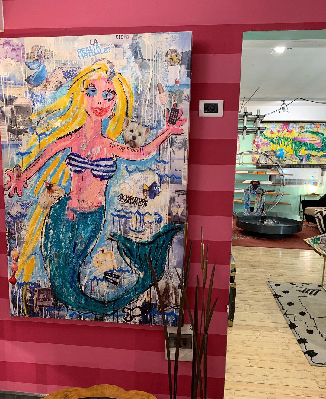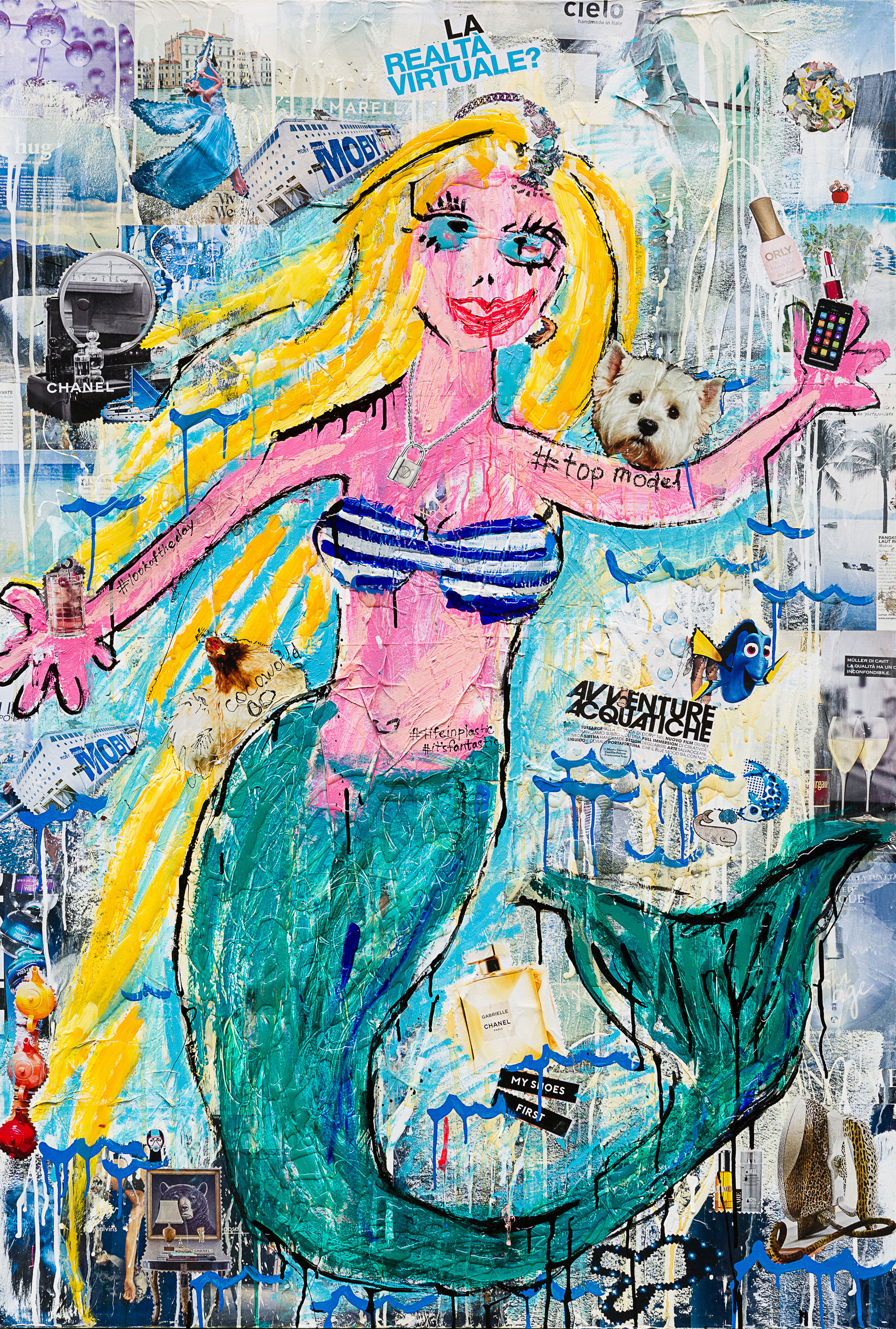 LUDMILLA RADCHENKO È UN'ARTISTA E DESIGNER AFFERMATA DAI PROGETTI AMBIZIOSI, MA È ANCHE UNA MAMMA ORGOGLIOSA; PER LA SUA ULTIMA SERIE, HA SCELTO DI RIPORTARE I DISEGNI DELLA FIGLIA EVA, 5 ANNI E MEZZO, SU GRANDE SCALA. SONO NATE COSÌ LE PARTICOLARISSIME OPERE DI “EVA IN WONDERLAND”, DOVE I SOGGETTI FIABESCHI IMMAGINATI DA EVA SONO STATI RIPRESI SULLA TELA DALLA MANO ESPERTA DI LUDMILLA. IL RISU LTATO È UNA RAPPRESENTAZIONE ORIGINALE E D'IMPATTO DI CASTELLI INCANTATI, PERSONAGGI FANSTASTICI E ANIMALI DELLA GIUNGLA, CARATTERIZZATI DA LINEE E COLORI DECISI. “EVA IN WONDERLAND” È UNA FAVOLA, O ALMENO SEMBRA ESSERLO. GUARDANDO PIÙ DA VICINO PERÀ, CI RENDIAMO CONTO CHE IL MONDO IMMAGINATO DA UN BAMBINO SI FA PORTATORE DI UN MESSAGGIO SPECIALE ; È LA PROVA CONCRETA CHE L'IMPERFEZIONE GENERA SEMPRE QUALCOSA DI UNICO E STRAORDINARIO. QUEST’OPERA APPARTIENE ALLA SERIE "EVA IN WONDERLAND" DEDICATA ALL’IMMAGINAZIONE INFANTILE: L’ARTISTA HA REALIZZATO 6 OPERE UTILIZZANDO I DISEGNI DI SUA FIGLIA EVA (CHE ALLORA AVEVA 5 ANNI) RIPORTATI IN PROPORZIONE DA UN FOGLIO A4 A TELE PIÙ GRANDI. CON LA SUA MANO ESPERTA ED UNA TECNICA AFFERMATA DA ANNI, LUDMILLA HA CREATO UN’ATMOSFERA PER I PERSONAGGI IMMAGINATI DA EVA. LUDMILLA RADCHENKO IS AN ARTIST AND DESIGNER WITH AMBITIOUS PROJECTS, BUT SHE IS ALSO A PROUD MOTHER; FOR HER LATEST SERIES, SHE CHOSES TO REPRODUCE ON A LARGE SCALE THE DRAWINGS OF HER 5 YEARS DAUGHTER EVA. IN THE VERY SPECIAL ARTWORKS OF “EVA IN WONDERLAND”, THE FAIRYTALE SUBJECTS IMAGINED BY EVA WERE TAKEN ON THE CANVAS BY LUDMILLA'S EXPERT HAND. THE RESULT IS AN ORIGINAL REPRESENTATION OF ENCHANTED CASTLES, FANSTASTIC CHARACTERS AND JUNGLE ANIMALS, CHARACTERIZED BY BOLD LINES AND COLORS. “EVA IN WONDERLAND” IS A FAIRYTALE, OR AT LEAST IT SEEMS TO BE. LOOKING CLOSER, WE REALIZE THAT THE WORLD IMAGINED BY A CHILD IS THE MIRROR OF A SPECIAL MESSAGE; IT'S THE CONCRETE PROOF THAT IMPERFECTION ALWAYS GENERATES SOMETHING UNIQUE AND EXTRAORDINARY. SOCIAL BLONDIE, 150X100CM ARTWORK BY LUDMILLA RADCHENKO MADE IN 2017, COLLAGE TECHNIQUE, ACRYLIC AND RESIN ON CANVAS. THIS ARTWORK BELONGS TO THE "EVA IN WONDERLAND" SERIES DEDICATED TO CHILDREN'S IMAGINATION: THE ARTIST CREATED 6 ARTWORKS USING THE DRAWINGS OF HIS DAUGHTER EVA (WHO WAS THEN 5 YEARS OLD) REPRODUCED IN PROPORTION FROM AN A4 SHEET TO LARGER CANVASES. WITH HER EXPERT HAND AND A TECHNIQUE THAT HAS BEEN ESTABLISHED FOR YEARS, LUDMILLA CREATED AN ATMOSPHERE FOR THE CHARACTERS IMAGINED BY EVA.