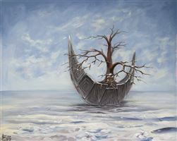 AUTHOR AUTHENTICATION, TREE, PAINTING, BOAT, SURREALISM, SEA, TRISH, ELENA MORGUN