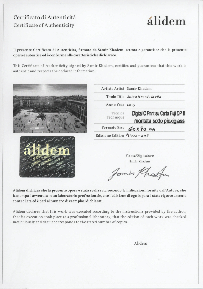 EN Samir Khadem, photographer of Syrian origins, has always been passionate about images and technology. Since 2010, after a 10-year experience in the field of communication, he has devoted himself to art photography. Continuing to experiment with new styles and approaches, he has developed an eclectic eye, able to address different types of photography with a focus on modern architecture and street photography. After the first publication in the magazine T. Generation (# 56), in 2013 the magazine Digital Camera chooses one of his shots for the cover and dedicates to him an in-depth interview. The following year he publishes his photographs in Nikon Special - Photo Professional France and in Nikon Special - N photography Italy. Recommended by the Artistic Committee of the Park Association Arese Borromeo in 2013, he launches his career with the exhibition Reflections at the gallery Bazzini15 Milan. The exhibition is followed in 2014 by the participation in the collective exhibition at Assab One of Milan and a permanent exhibition at Art Cafe Pleasure (Milan). As a true ‘urban hunter’, as he likes to call himself, he explores new techniques of shooting and post-production, directing his photographic research towards a continuous improvement. In 2014 he won the prestigious First Prize Gold Plate in the Photography Prize “Arte” section by Cairo Editore in Milan. IT Samir Khadem, fotografo di origini siriane, è da sempre appassionato di immagini e tecnologia. Dal 2010 si dedica alla fotografia d’arte, dopo un’esperienza decennale nel settore della comunicazione. Continuando a sperimentare approcci e stili sempre nuovi, sviluppa un occhio eclettico, capace di rivolgersi ai diversi generi fotografici con una particolare attenzione all’architettura moderna e alla street photography. Dopo la prima pubblicazione sul magazine T. Generation (N°56), nel 2013 la rivista Digital Camera sceglie un suo scatto per la copertina e gli dedica un’approfondita intervista e, ancora, l’anno successivo pubblica sue fotografie anche su Nikon Special - Photo Professional France e Nikon Speciale – N photography Italy. Segnalato dalla Commissione Artistica dell’Associazione Parco Arese Borromeo nel 2013, avvia la sua carriera espositiva con la mostra Riflessi, presso la galleria Bazzini 15 di Milano. Seguono, nel 2014 la partecipazione a un’esibizione collettiva presso Assab One di Milano e un’esposizione permanente presso Pleasure Art Cafè (Milano). Da vero ‘cacciatore urbano’, come lui si definisce, approfondisce nuove tecniche di ripresa e post-produzione indirizzando la sua ricerca fotografica verso un costante miglioramento. Nel 2014 vince il prestigioso Primo Premio Targa Oro sezione ‘Fotografia’ al premio Arte Cairo Editore di Milano.