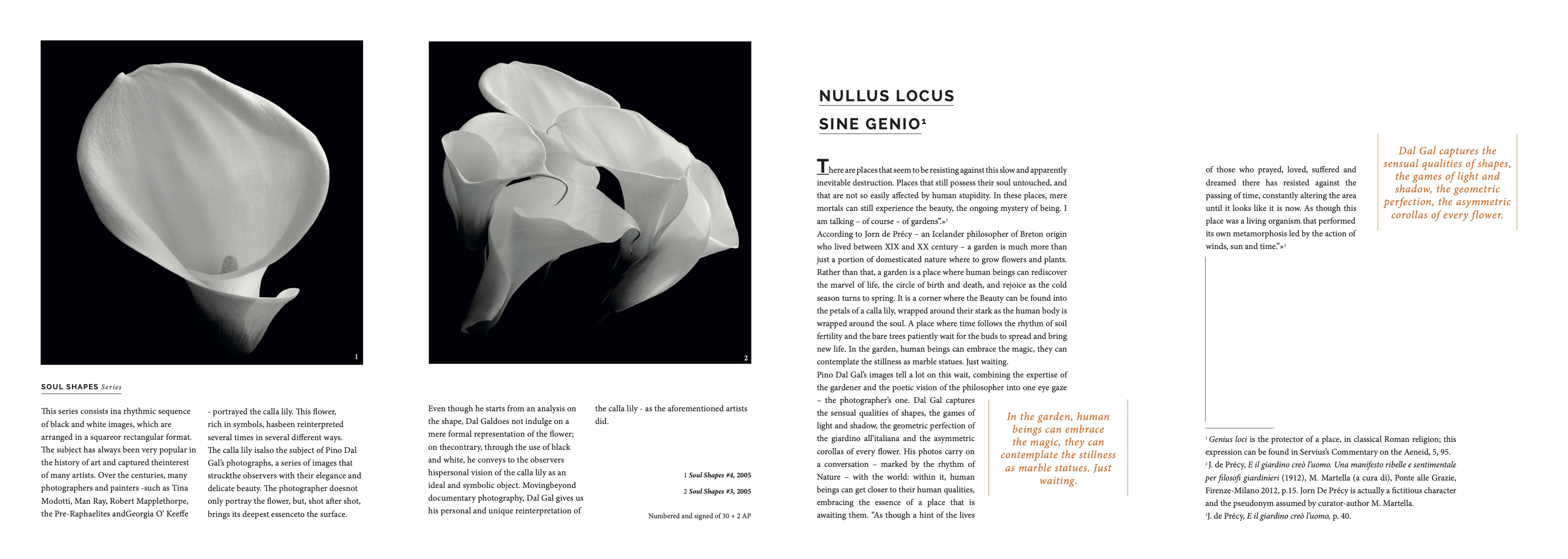 EN A leading name in Italian photography, Pino Dal Gal was born in Verona, where he developed his artistic sensitivity. In Milan he perfected his shooting technique, devoting himself entirely to costume photography. In the meantime, he worked for the publishing office of Mondadori Editore and opened an advertising agency in Verona, but his main occupation continued to be photography. This became an instrument of social condemnation with the Chicken Story, Mensa Aziendale and La Cava collections, which took a journalistic approach to report on the unique conditions of the Italian work environment in the Seventies. This was the period of his first foreign exhibitions, including the Galerie Vinci 1840 in Paris in 1977, and the Canon Gallery in Amsterdam and the Taller Fotografico in Barcelona the same year. Also in 1977 Helmut Gernsheim brought many of his photographs to the Uni- ted States and sold them to the photography collection at the University of Texas at Austin. In the Eighties Dal Gal focused on researching anthropomorphic forms of rocks and nudes, and Gernsheim chose him to represent Italy in the International Photography Selection in Hildesheim and then as the only Italian photographer for the inauguration of the new Guggenheim exhibition space in Venice. In 2000 his artworks are exposed at the Centro Internazionale di Fotografia- Scavi Scaligeri in Verona and at the Keith de Lellis Gallery (New York); in 2001 he took part in the 1°Biennale Annali Postumia di Fotografia – Modern Art Museum of Gazoldo degli Ippoliti (Mantova). In 2003 he exhibited at the Stoke Museum and Art Galle- ry (Bath, UK). His pictures are in many public collections: at the Reiss Engelhorn Museen-Manheim (Germany), at Modern Art Museum of (Mantova), at the Uni- versity of Texas - Austin “The college of fine Arts”, foundation H.Gernsheim and at the Modern and Contemporary Art Museum in Modena. IT Nome di punta della fotografia italiana, Pino Dal Gal nasce a Verona, dove svi- luppa la propria sensibilità artistica. A Milano perfeziona le tecniche di ripresa, dedicandosi totalmente alla fotografia di costume. Nel frattempo lavora ai servizi editoriali di Mondadori e apre a Verona un’agenzia di pubblicità ma la fotografia rimane la sua prima occupazione. Diventa strumento di denuncia sociale con le collezioni Chicken Story, Mensa Aziendale e La Cava, che con taglio giornalistico riportano la particolare condizione dell’ambito lavorativo nell’Italia degli anni ’70. È il periodo delle prime esposizioni estere tra cui le Galerie Vinci 1840 di Parigi nel 1977, la Canon Gallery di Amsterdam e il Taller Fotografico di Barcellona lo stes- so anno. Nel 1977 Helmut Gernsheim porta molte delle sue fotografie negli Stati Uniti e le cede alla collezione fotografica dell’University of Texas, Austin. Gli anni ’80 lo vedono concentrato sulla ricerca di forme antropomorfe di rocce e nudi. Lo stesso Gernsheim lo sceglie per rappresentare l’Italia nella Selezione Internazionale di Fotografia di Hildesheim, e successivamente quale unico fotografo italiano per l’inaugurazione del nuovo spazio espositivo Guggenheim a Venezia. Nel 2000 è pre- sente al Centro Internazionale di Fotografia - Scavi Scaligeri di Verona ed espone alla Keith de Lellis Gallery (New York); nel 2001 partecipa alla 1°Biennale Annali Postumia di Fotografia - Museo d’Arte Moderna di Gazoldo degli Ippoliti (Manto- va). Nel 2003 espone allo Stoke Museum and Art Gallery(Bath, UK). Lesue opere sono presenti in numerose collezioni pubbliche, ad esempio al Reiss Engelhorn Museen-Manheim (Germania), al Museo d’arte Moderna - Gazoldo degli Ippoliti (Mantova), all’University of Texas - Austin “The college of fine Arts”, fondazione H. Gernsheim e al Museo d’arte moderna e contemporanea di Modena.