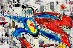 LUDMILLA RADCHENKO È UN'ARTISTA E DESIGNER AFFERMATA DAI PROGETTI AMBIZIOSI, MA È ANCHE UNA MAMMA ORGOGLIOSA; PER LA SUA ULTIMA SERIE, HA SCELTO DI RIPORTARE I DISEGNI DELLA FIGLIA EVA, 5 ANNI E MEZZO, SU GRANDE SCALA. SONO NATE COSÌ LE PARTICOLARISSIME OPERE DI “EVA IN WONDERLAND”, DOVE I SOGGETTI FIABESCHI IMMAGINATI DA EVA SONO STATI RIPRESI SULLA TELA DALLA MANO ESPERTA DI LUDMILLA. IL RISU LTATO È UNA RAPPRESENTAZIONE ORIGINALE E D'IMPATTO DI CASTELLI INCANTATI, PERSONAGGI FANSTASTICI E ANIMALI DELLA GIUNGLA, CARATTERIZZATI DA LINEE E COLORI DECISI. “EVA IN WONDERLAND” È UNA FAVOLA, O ALMENO SEMBRA ESSERLO. GUARDANDO PIÙ DA VICINO PERÀ, CI RENDIAMO CONTO CHE IL MONDO IMMAGINATO DA UN BAMBINO SI FA PORTATORE DI UN MESSAGGIO SPECIALE ; È LA PROVA CONCRETA CHE L'IMPERFEZIONE GENERA SEMPRE QUALCOSA DI UNICO E STRAORDINARIO. QUEST’OPERA APPARTIENE ALLA SERIE "EVA IN WONDERLAND" DEDICATA ALL’IMMAGINAZIONE INFANTILE: L’ARTISTA HA REALIZZATO 6 OPERE UTILIZZANDO I DISEGNI DI SUA FIGLIA EVA (CHE ALLORA AVEVA 5 ANNI) RIPORTATI IN PROPORZIONE DA UN FOGLIO A4 A TELE PIÙ GRANDI. CON LA SUA MANO ESPERTA ED UNA TECNICA AFFERMATA DA ANNI, LUDMILLA HA CREATO UN’ATMOSFERA PER I PERSONAGGI IMMAGINATI DA EVA. LUDMILLA RADCHENKO IS AN ARTIST AND DESIGNER WITH AMBITIOUS PROJECTS, BUT SHE IS ALSO A PROUD MOTHER; FOR HER LATEST SERIES, SHE CHOSE TO REPRODUCE ON A LARGE SCALE THE DRAWINGS OF HER 5 YEARS DAUGHTER EVA. IN THE VERY SPECIAL ARTWORKS OF “EVA IN WONDERLAND”, THE FAIRYTALE SUBJECTS IMAGINED BY EVA WERE TAKEN ON THE CANVAS BY LUDMILLA'S EXPERT HAND. THE RESULT IS AN ORIGINAL REPRESENTATION OF ENCHANTED CASTLES, FANSTASTIC CHARACTERS AND JUNGLE ANIMALS, CHARACTERIZED BY BOLD LINES AND COLORS. “EVA IN WONDERLAND” IS A FAIRYTALE, OR AT LEAST IT SEEMS TO BE. LOOKING CLOSER, WE REALIZE THAT THE WORLD IMAGINED BY A CHILD IS THE MIRROR OF A SPECIAL MESSAGE; IT'S THE CONCRETE PROOF THAT IMPERFECTION ALWAYS GENERATES SOMETHING UNIQUE AND EXTRAORDINARY. SUPER DAD, 100X150CM ARTWORK BY LUDMILLA RADCHENKO MADE IN 2017, COLLAGE TECHNIQUE, ACRYLIC AND RESIN ON CANVAS. THIS ARTWORK BELONGS TO AN ARTISTIC SERIES "EVA IN WONDERLAND" DEDICATED TO THE INFANTILE IMAGINATION, LUDMILLA RADCHENKO CREATED SIX ARTWORKS USING THE DRAWINGS OF HER DAUGHTER EVA (THEN SHE WAS 5 YEARS OLD) TRANSFERRED IN PROPORTION FROM A4 ONTO THE LARGER CANVASES, AND WITH HER EXPERT HAND AND THE TECHNIQUE ESTABLISHED FOR YEARS, CREATED AN ATMOSPHERE FOR THE CHARACTERS OF EVA.