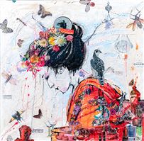 "SYMPHONY OF SILENCE", È IL TITOLO SCELTO PER QUEST'OPERA DI FORTE IMPATTO EMOTIVO, CAPACE DI FARCI PERCEPIRE LA GRANDEZZA DEL SILENZIO. DETERMINAZIONE E RASSEGNAZIONE CONVIVONO NEL SIMBOLO DELLA GEISHA, SCELTA PER INTERPRETARE TUTTI I MISTERI E LE CONTRADDIZIONI DELL'ESSERE DONNA. ATTRAVERSO LA PITTURA, LA RADCHENKO, SCEGLIE LA FEMMINILITÀ GIAPPONESE ICONICA E FAVOLEGGIATA, PER DARE UN SUONO, A PAROLE NON DETTE. UN SILENZIO BIANCO, DOVE PICCOLE FARFALLE SI POSANO SU PENSIERI CHE ALEGGIANO NELL'ARIA PROFUMATA. ALLE ORIGINI DELL'INCANTO, TROVIAMO LEI: PROTAGONISTA PER ECCELLENZA DELLA FEMMINILITÀ ORIENTALE, PONTE TRA ORIENTE ED OCCIDENTE, SI RACCONTA ATTRAVERSO IL SUO CANTO MISTERIOSO. AVVOLTA DA UN KIMONO ROSSO, COLORE DELLA PASSIONE, IL CONTORNO DEL SUO VISO ACCAREZZATO DAL BIANCO DELLO SFONDO. FONTE DI GRANDE ENERGIA E MISTERO, DOLCEZZA E GENTILEZZA, QUESTI DUE PROTAGONISTI, INTONANO IL LORO CANTO, IN UNA DIMENSIONE QUASI ULTRATERRENA, DOVE SAPER COMPRENDERE DIVENTA LA FORMA PIÙ ALTA DELL'ESSERE UMANO. "SYMPHONY OF SILENCE" IS THE TITLE CHOSEN FOR THIS ARTWORK WITH A STRONG EMOTIONAL IMPACT, CAPABLE OF MAKING US PERCEIVE THE GREATNESS OF SILENCE. DETERMINATION AND RESIGNATION COEXIST IN THE SYMBOL OF THE GEISHA, CHOSEN TO INTERPRET ALL THE MYSTERIES AND CONTRADICTIONS OF BEING A WOMAN. THROUGH THIS PAINTING, RADCHENKO CHOOSES THE ICONIC AND FABLED JAPANESE FEMININITY, TO GIVE A SOUND TO UNSPOKEN WORDS. A WHITE SILENCE, WHERE SMALL BUTTERFLIES ALIGHT ON THOUGHTS THAT FLOAT IN THE PERFUMED AIR. AT THE ORIGINS OF THE ENCHANTMENT, WE FIND HER: PROTAGONIST PAR EXCELLENCE OF ORIENTAL FEMININITY, A BRIDGE BETWEEN EAST AND WEST, SHE IS TOLD THROUGH HER MYSTERIOUS SONG. WRAPPED IN A RED KIMONO, THE COLOR OF HER PASSION, THE OUTLINE OF HER FACE CARESSED BY THE WHITE BACKGROUND. SOURCE OF GREAT ENERGY AND MYSTERY, SWEETNESS AND KINDNESS, THESE TWO PROTAGONISTS SING THEIR SONG, IN AN ALMOST OTHERWORLDLY DIMENSION, WHERE KNOWING HOW TO UNDERSTAND BECOMES THE HIGHEST FORM OF THE HUMAN BEING.