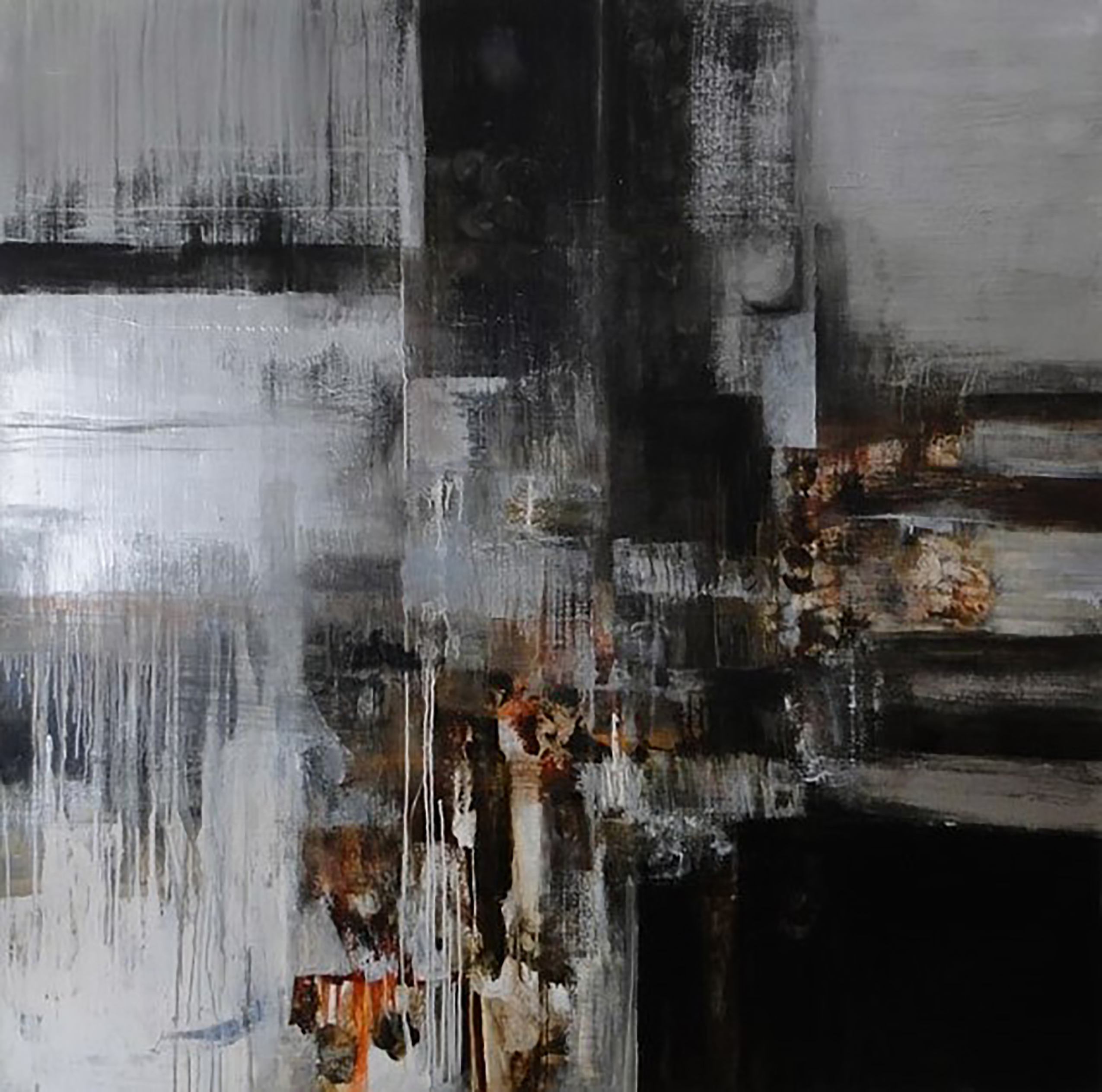 CON TEXTURA MATÉRICA Y PALETA EN NEGROS, MAGENTAS Y PLATA