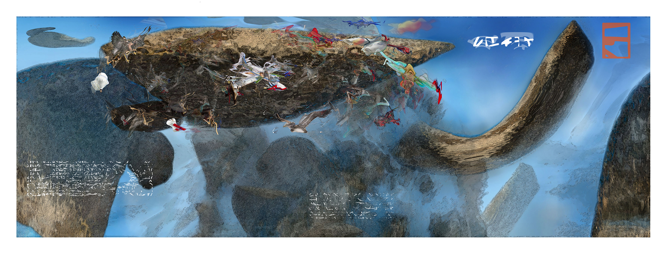 A NON-NARRATIVE IMAGE CONTAINING FAKE TEXT WHICH SUGGESTS THERE'S AN EXPLANATION BUT THERE ISN'T ANY. THAT WAY THE IMAGE STAYS OPEN TO ANY POSSIBLE INTERPRETATION.