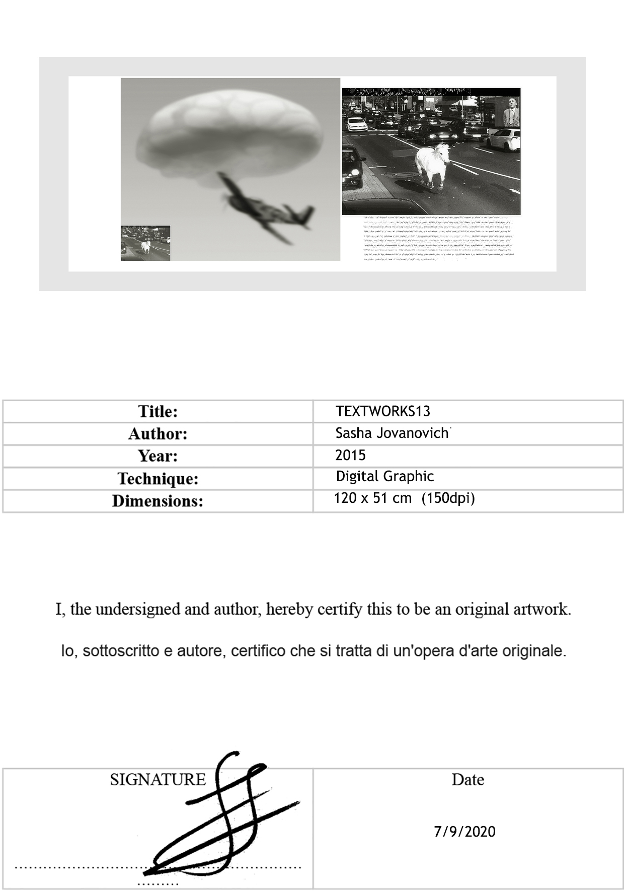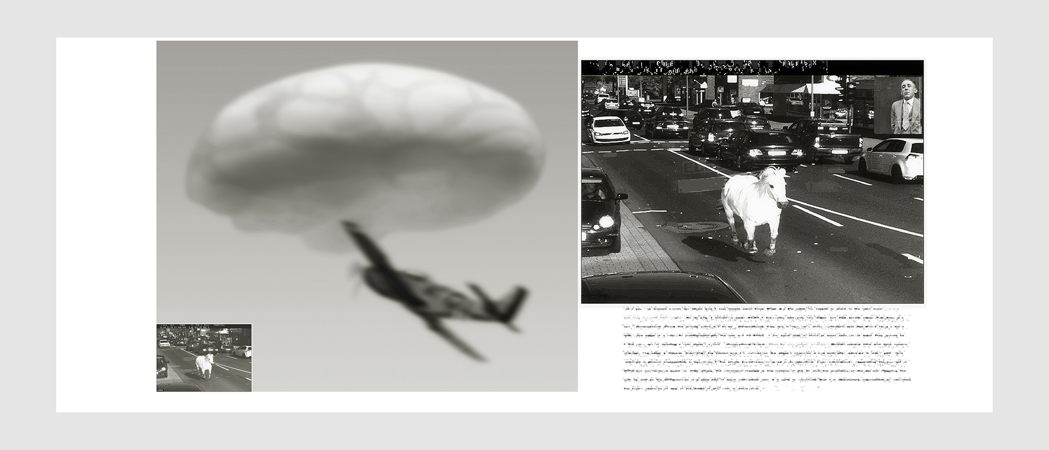 A NON-NARRATIVE IMAGE CONTAINING FAKE TEXT WHICH SUGGESTS THERE'S AN EXPLANATION BUT THERE ISN'T ANY. THAT WAY THE IMAGE STAYS OPEN TO ANY POSSIBLE INTERPRETATION.