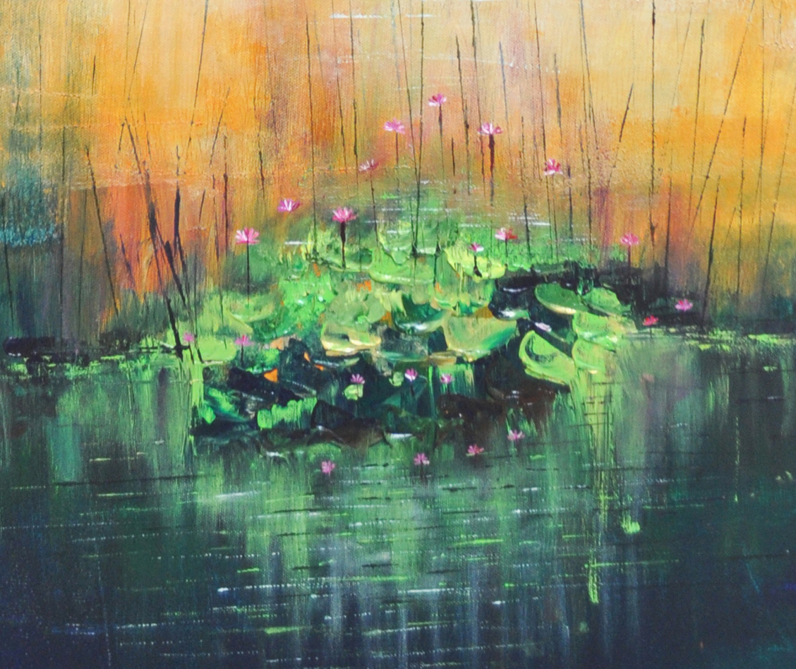 THE EVENING IN THE LOTUS POND CONNECTS US TO OUR INNER SOUL AND GIVES CALMNESS AND PEACE TO OUR MIND.