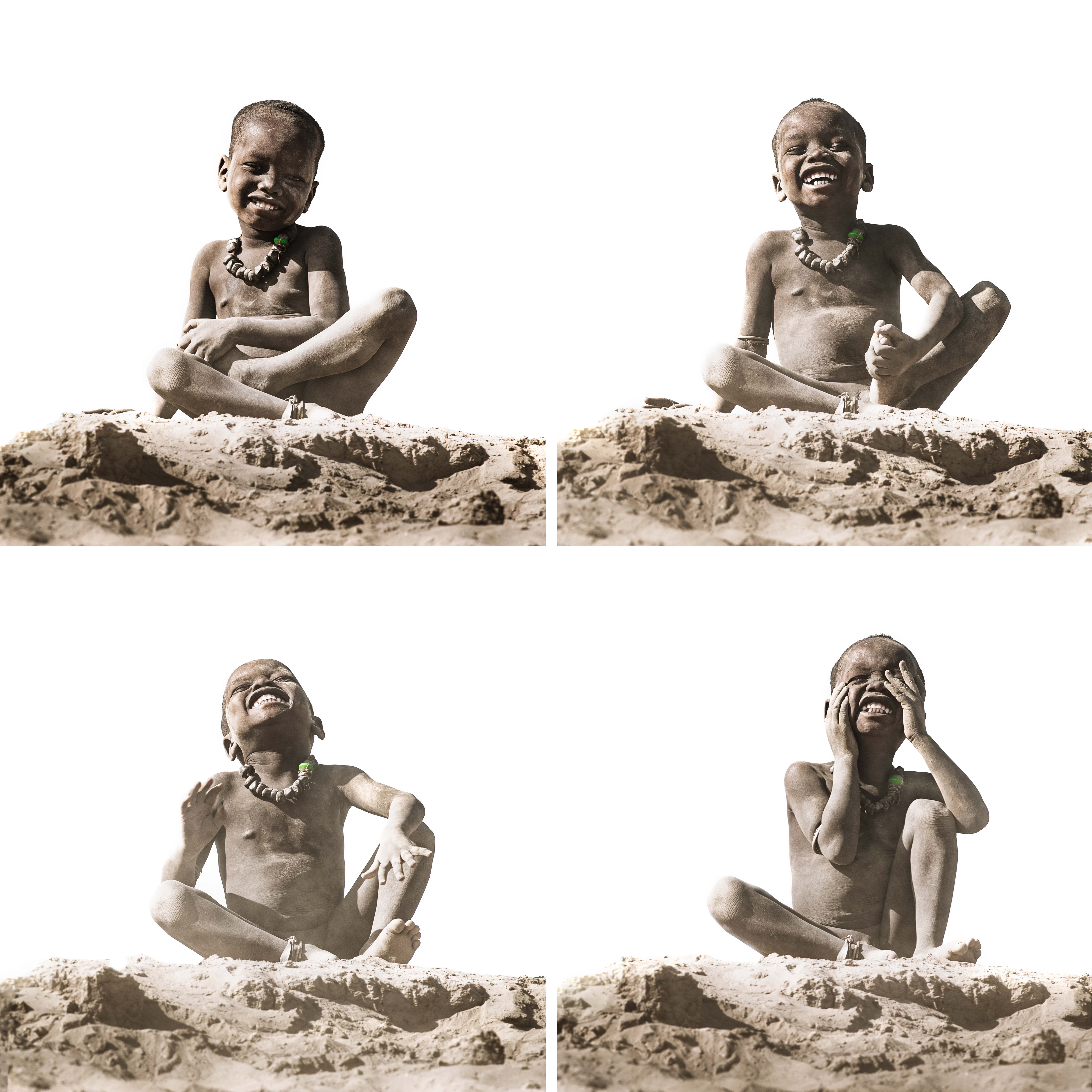 OMO VALLEY, ETHIOPIA. SITTING ON THE EDGE OF A MOUND OF SAND, THIS CHILD, FROM THE KARA TRIBE, WATCHED ME AS I PHOTOGRAPHED HIS FRIENDS PLAYING NEARBY. WHEN I TURNED TOWARDS HIM, LIFTING THE CAMERA IN HIS DIRECTION, HE BURST INTO A JOYFUL OPEN LAUGH. SHOOTING IN CONTINUOUS MODE, I TOOK FOUR IMAGES OF HIS LAUGHTER, FOLLOWING THE WHOLE "EVOLUTION" OF SUCH DISPLAY OF GENUINE HAPPINESS... AND, AS HENRI CARTIER-BRESSON WOULD SAY, I CAPTURED A "DECISIVE MOMENT" OF LIFE.