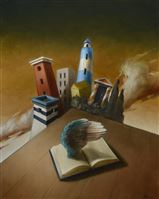Nato a Zurigo nel 1965. Il suo percorso artistico prende l’avvio dalla poetica della scuola Metafisica di Giorgio de Chirico e Alberto Savinio, per reinventarne tuttavia i fondamenti secondo un’interpretazione personale del tutto originale. Nella sua ricerca procede attraverso momenti di contemplazione e silenzi metafisici, a cui si contrappongono espressività notturne e intimamente travagliate, dove si respira netto il distacco dall’immobilità silente che abita le tele del Pictor Optimus. Le sue opere si presentano dunque come palcoscenici in cui gli oggetti presenti sono portatori di simbologie oniriche. Ciro Palumbo non è solo un pittore, ma di fatto un poeta che riflette, agisce e compone per coniugare metafore sull’inafferrabilità del tempo e l’incommensurabilità dello spazio, mostrando quindi la sua capacità di approfondire l’osservazione non tanto della natura, quanto delle impressioni immaginifiche che provengono dalla memoria. Curioso ricercatore e studioso, lavora da qualche anno anche sul tema del Mito, interpretando la mitologia classica in chiave squisitamente moderna, e dandone una lettura profondamente colta e suggestiva. L’artista riesce dunque a sublimare e contestualizzare i miti antichi in spazi al di fuori del tempo, dimostrando la loro contemporaneità. La sua formazione di grafico pubblicitario lo porta ad esercitare per anni la professione di Art Director in Agenzie pubblicitarie di Torino. È durante questo percorso che scopre ed amplia le sue capacità visive e compositive. Successivamente, l’esperienza in una moderna bottega d’arte e la conoscenza di alcuni Maestri contemporanei, lo conducono ad approfondire la tecnica della pittura ad olio con velatura. Negli ultimi anni l’artista si dedica con successo anche alla scultura donando tridimensionalità, attraverso la terracotta, ai topos della sua poetica. Mostre ed eventi più recenti Mostre personali Rinascenza. Dolor et Furor a cura di Luca Cantore D’Amore presso Palazzo Velli Expo, Roma (in collaborazione con 7ettanta6ei Art, Milano) maggio 2021 Homo Viator. Il poeta visionario a cura di Salvo Daniele Torrisi presso Ex Chiesa del Carmine, Taormina (Me) (organizzata da Catania Art Gallery / con rappresentazione della pièce teatrale ispirata all’Homo Viator, scritta e interpretata da PierGiuseppe Francione) agosto 2020 Moby Dick mi disse a cura di Laura Tartarelli presso Laura Tartarelli Contemporary Art, Pietrasanta (Lu) luglio 2020 La pittura. Una finzione vera presso Castello Baronale di Minturno (Lt) (organizzata da Cristiano Art Gallery) 2019 Homo Viator. Il poeta visionario presso Stadio di Domiziano, Roma (organizzata da Canova Arte, Roma / con rappresentazione della pièce teatrale ispirata all’Homo Viator, scritta e interpretata da PierGiuseppe Francione) 2019 Rinascenza. Un risveglio per l’anima (all’interno della collettiva “Risvegli”) presso Museo civico di Palazzo della Penna, Perugia (organizzata da Michela Lupi e Antonello Turchetti / in collaborazione con 7ettanta6ei Art, Milano) 2019 The strenght of gods and heroes. La forza degli dei e degli eroi a cura di Angelo Crespi presso: . ST ART, Mondadori Megastore, Milano . Stadio di Domiziano, Roma 2018 Palumbo - Fellini. Immaginario surreale tra pittura e cinema (all’interno dell’Ischia Film Festival) presso Carcere Borbonico del Castello Aragonese d’Ischia, Ischia (Na) (organizzata da 7ettanta6ei Art, Milano) 2018 Rinascenza. La pittura, un segreto non ancora svelato presso Palazzo Medici Riccardi, Sale Fabiani, Firenze (organizzata da Riccardo Ferrucci / in collaborazione con 7ettanta6ei Art, Milano) 2018 Isole migranti a cura di Ivan Quaroni e Alessandra Redaelli presso Palazzo della Cultura, Catania 2017 Il volo del Poeta visionario con racconti in versi di Aldo Nove a cura di Alessandra Redaelli presso Sala Colonnato del Palazzo della Città Metropolitana di Bari, Bari 2016 Le Soglie dell’enigma a cura di Francesca Bogliolo presso Galleria Il Forte Antichità, Forte dei Marmi (Lu) 2016 Lo Spirito e la Carne a cura di Alessandra Redaelli presso Galleria Biffi Arte, Piacenza 2016 Homo Viator a cura di Flaminio Gualdoni / con testo di Riccardo Ferrucci presso Museo Piaggio, Pontedera (Pi) 2016 Sguardi eterni tra la terra e il cielo a cura di Alessandra Redaelli (organizzata dal MACS di Catania) presso: . MAUTO Museo Nazionale dell’Automobile di Torino . Castello di Schisò, Giardini Naxos (Me) . Castello Carlo V, Monopoli (Ba) 2015 I mulini di Dio a cura di Alessandra Frosini e Stefano Gagliardi (organizzata da ArToday Events, San Gimignano) presso Ex Ospedale San Rocco, Matera 2015 La solitudine di Prometeo Presso MACS Museo Arte Contemporanea Sicilia, Catania 2014 I mulini di Dio a cura di Alberto Agazzani (organizzata dalla Galleria Gagliardi, San Gimignano) presso Convento di Santo Spirito ex carceri, Nola (Na) 2014 Affinità silenti. Giorgio de Chirico e Ciro Palumbo a cura di Paolo Levi (organizzata da Sangiorgio International) presso Spazio Espositivo e Culturale della Società Bancaria Ticinese, Bellinzona, Svizzera 2014 Metafisiche visioni a cura di Stefania Bison presso Manni Art Gallery, Venezia Lido 2013 Islands and journeys. The color of silence presso Just Art - Contemporary Art Gallery, Providence (USA) 2013 Viaggi, naufragi, tempeste e nuove rotte a cura di Alberto D’Atanasio presso Galleria Arte Barbato, Scafati (Sa) 2013 Nuove terre e nuovi mari a cura di Alberto D’Atanasio presso Galleria Wikiarte, Bologna 2013 Al di là della realtà del nostro tempo presso Centrum Sete Sóis Sete Luas, Frontignan, Francia 2013 Il mistero dell’isola a cura di Alberto D’Atanasio presso CERP/Centro Espositivo Rocca Paolina, Perugia 2012 Paestum Arte 2012 (organizzata dall’ Associazione culturale G. Verdi) Paestum (Sa) 2012 Di aria, di acqua di terra, di fuoco, sono le sostanze dei sogni presso Civica Galleria d’Arte moderna “Giuseppe Sciortino”, Monreale (Pa) 2012 Il mistero dell