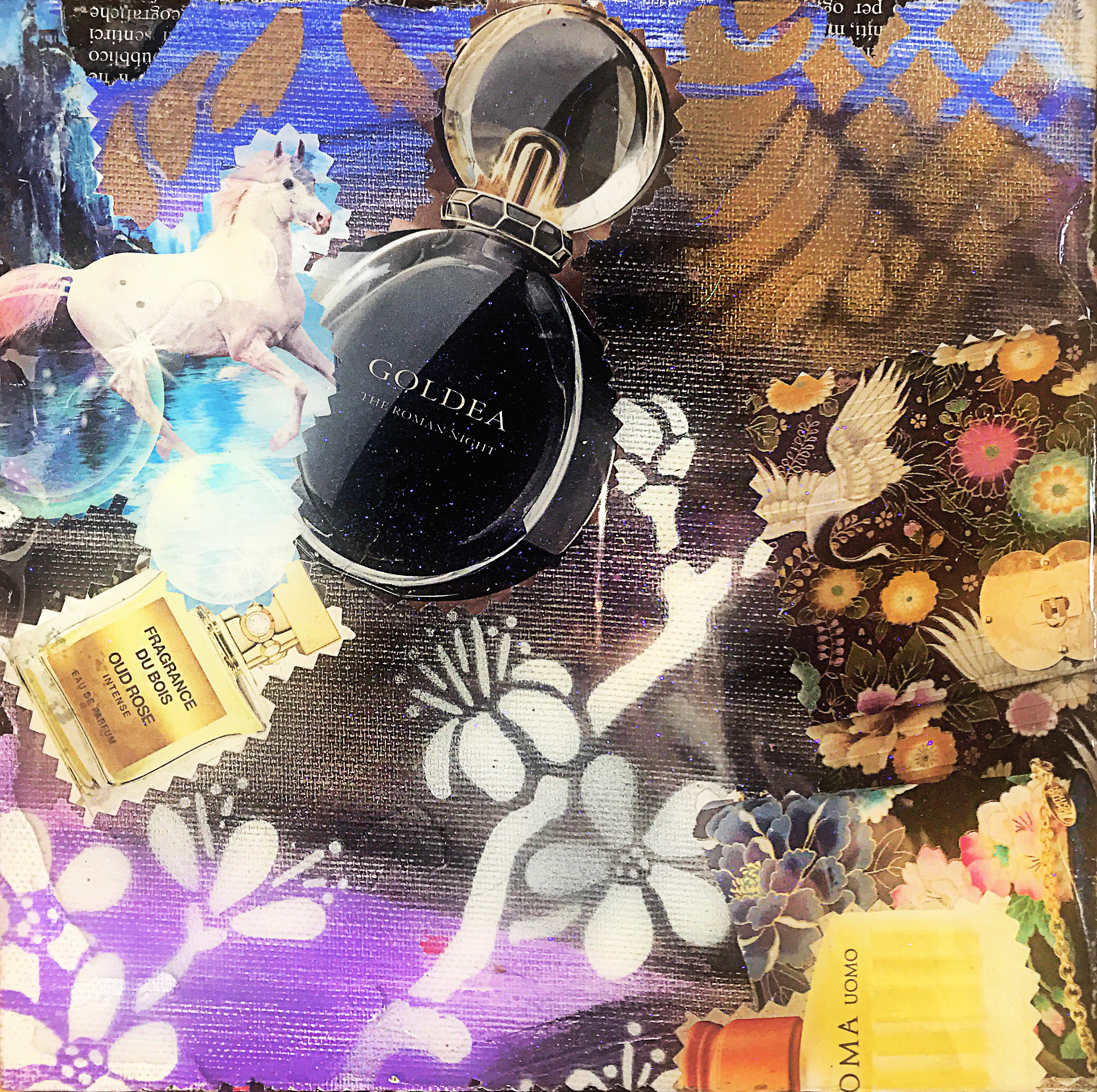 TECHNIQUE: COLLAGE, ACRYLIC, RESIN ON CANVAS