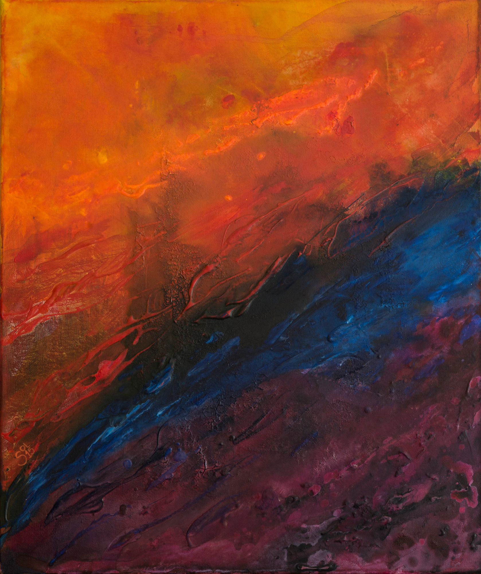 PINTURA DERRAMADA SOBRE LIENZO MANIFESTANDO EXPRESIÓN, TRABAJANDO "DENTRO" DE LA OBRA. TÉCNICA DE DRIPPING QUE COMBINA EL MOVIMIENTO DEL CUERPO, LA CONSISTENCIA VOLÁTIL DE LA PINTURA Y LA ABSORCI≤N DEL LIENZO. EN ESTA OBRA ESTÁ ELIMINADO EL CONCEPTO DE COMPOSICIÓN.