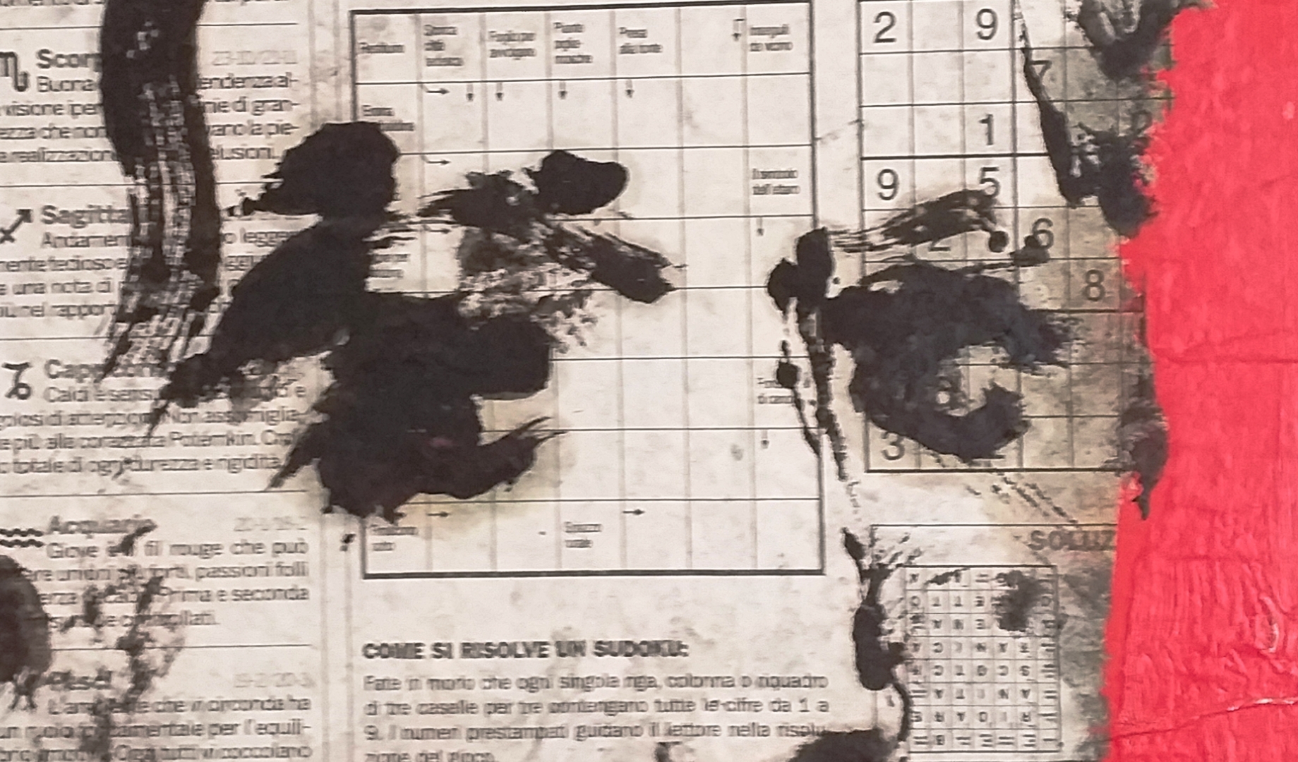 VOLTO DIPINTO SU CARTA DI QUOTIDIANO. Opera pubblicata nel catalogo della mostra "Archéologie du present", galerie orenda, parigi 2009.