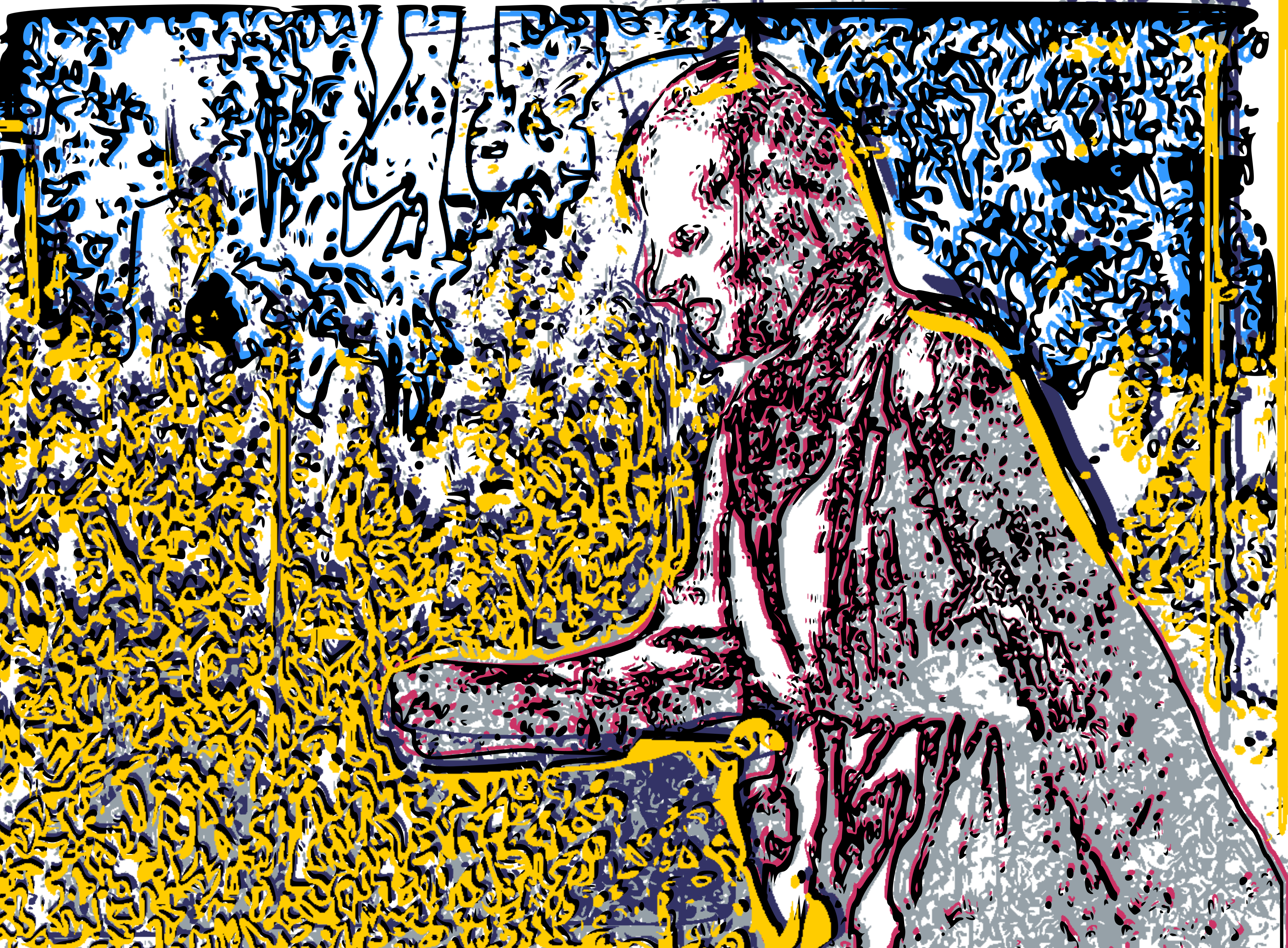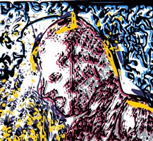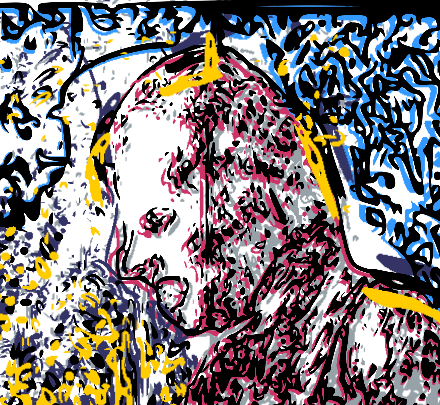 THIS ARTWORK IS ONLY DIGITAL. I CAPTURED AN IMAGE OF A MOVIE, THEN I REWORKED IT PERFORMING A DIGITAL TRANSFORMATION. THIS IS A SECOND VERSION/DIGITAL TRANSFORMATION OF THE SAME DRAFT, SOMETIMES I CREATE MORE VERSIONS. A DETAIL OF THE DIGITAL ARTWORK ON THE LEFT BELOW, THE FULL DIGITAL ARTWORK ON THE RIGHT BELOW.