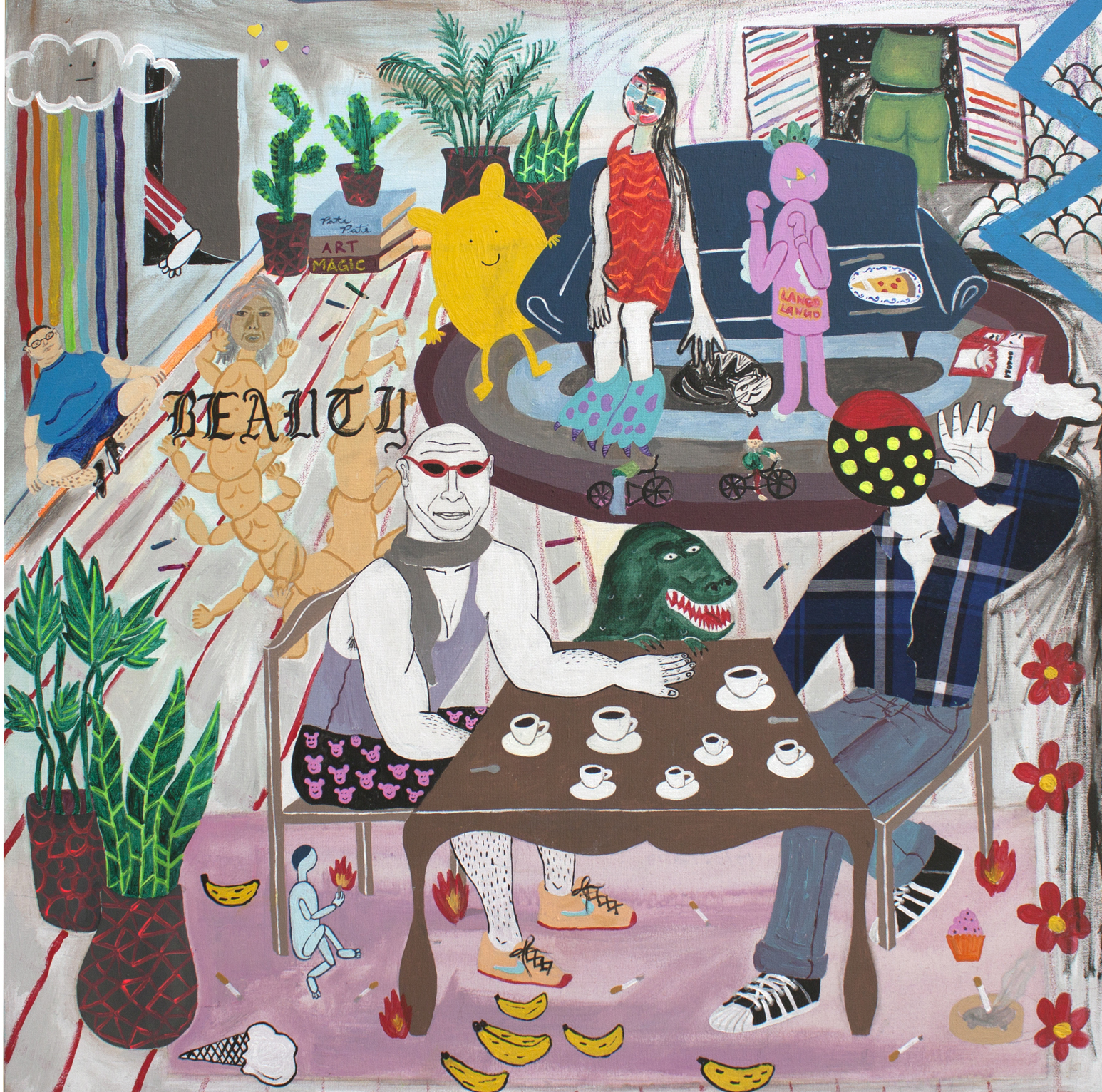 THIS CANVAS RESULT IS REALLY JUST LIKE SOME OF REALITY NOW DAYS WE SOMETIMES CATCH OURSELVES IN THE WEIRDEST SITUATIONS EVER AND MAYBE THATS THE DEEPER HIDDEN INSPIRATION OF THIS CAVAS BUT I WOULD LIKE THE EXPECTATOR TO HAVE ITS OWN DEFINITION ABOUT IT.