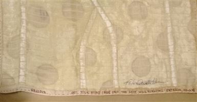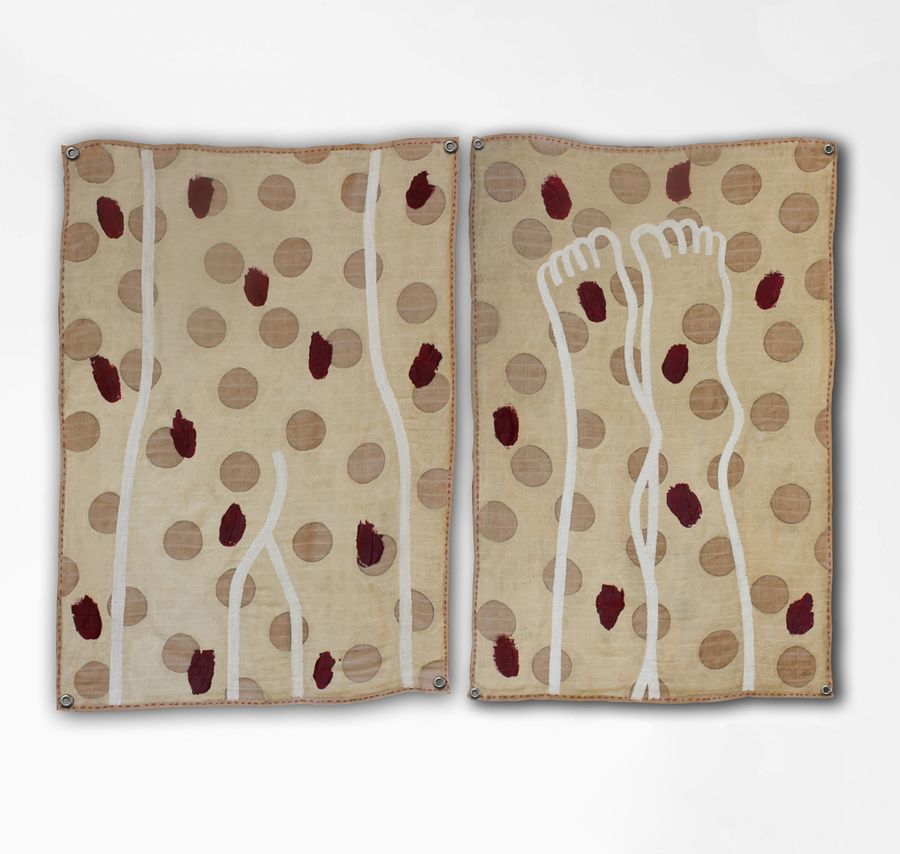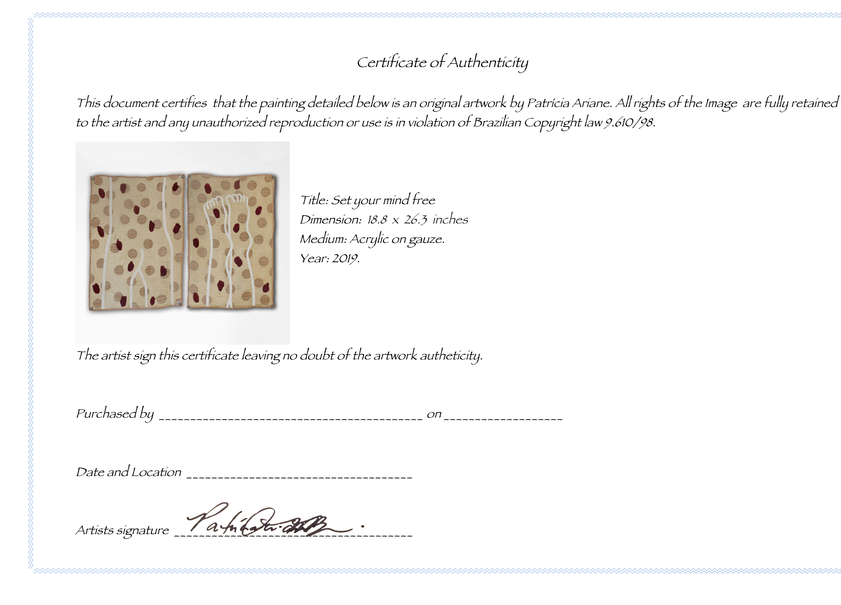 I PAINTED THIS ARTWORK IN MARCH 2019. ITS A PAINTING MADE WITH ACRYLICS ON A SOFT FABRIC CALLED GAUZE. THERE ARE EYELETS ON THE CORNERS FOR THE HANGING AND IT IS FINISHED WITH A MATTE VARNISH TO PROTECT THE PAINT, BUT I WOULD RECOMMEND FRAMING IT IN AN ACRYLIC BOX.