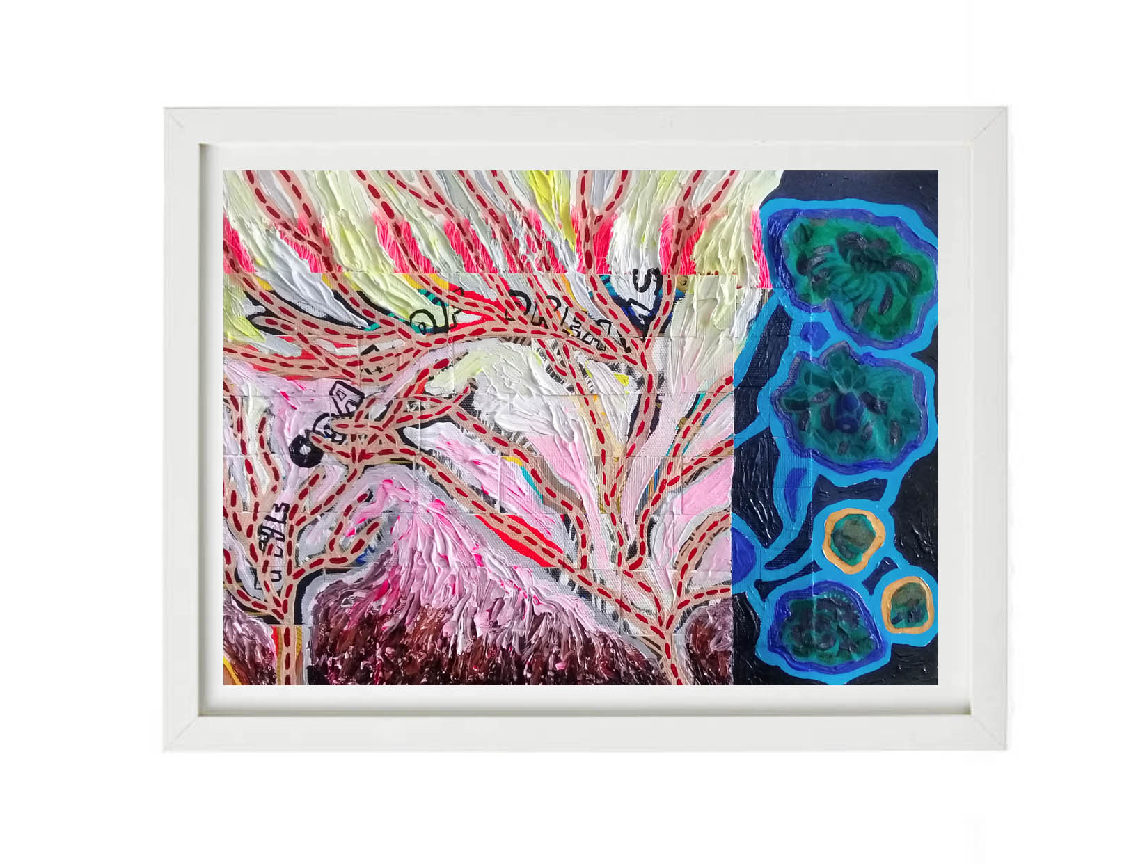 ABSTRACTEXPRESIONISM, PINK, CYAN, PATH , ROAD, BROWN, BLACK
