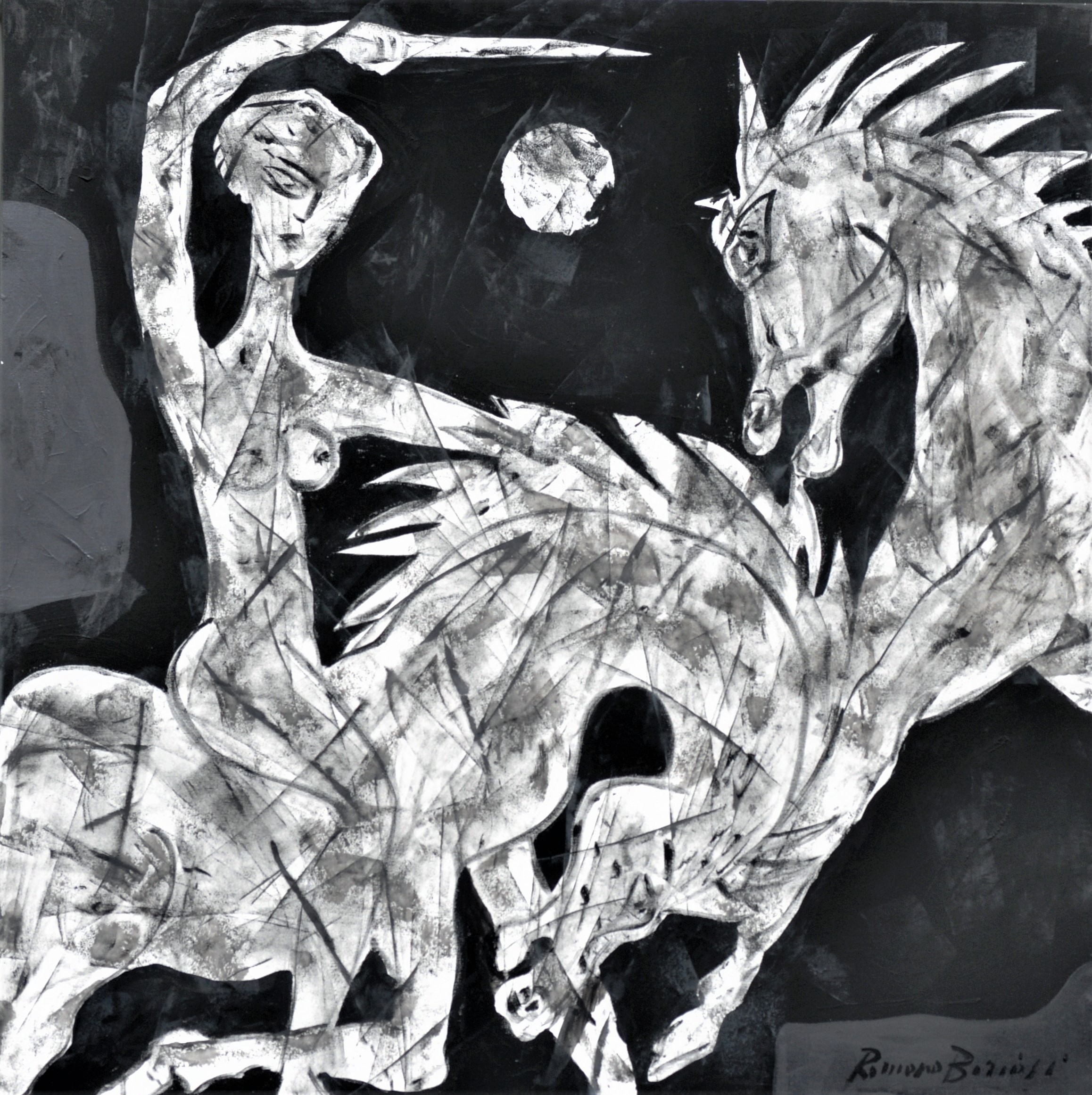ROMANO BORIOSI NASCE IL 26 NOVEMBRE 1956 A CITTA’ DI CASTELLO, ALTA VALLE DEL TEVERE IN PROVINCIA DI PERUGIA, DOVE RISIEDE CON LA MOGLIE ED I FIGLI. L’ARTISTA SI E’ DIPLOMATO IN GIORNALISMO PRESSO L’UNIVERSITA’ DI URBINO. FIN DALLA PIU’ GIOVANE ETA’ SI E’ DEDICATO ALLA PITTURA E ALLA SCULTURA, TANTO CHE A SOLI UNDICI ANNI, NEL 1967, FECE LA SUA PRIMA PERSONALE ALLA ACCADEMIA DEGLI SBALZATI DI SAN SEPOLCRO, TERRA DI PIERO DELLA FRANCESCA, PITTORE CHE HA LASCIATO PIU’ DI UNA TRACCIA NELL’ANIMO E NELLE OPERE DI ROMANO, ESPONENDO QUARANTA OPERE PITTORICHE DI NOTEVOLE IMPEGNO ARTISTICO, CHE SUSCITARONO MERAVIGLIA, NON SOLO NEL PUBBLICO, MA ANCHE NELLA CRITICA PIU’ QUALIFICATA. LO STESSO CARLO LEVI, VOLLE CONOSCERE PERSONALMENTE IL GIOVANE ARTISTA, PRESENZIANDO ALLA MOSTRA; COSI’ GERARDO DOTTORI IL QUALE MOSTRO’ DI VEDERE NEL GIOVANE, SORPRENDENTI QUALITA’ E DOTI NON COMUNI. ERA OVVIO CHE POI IL BORIOSI, NELLO STUDIO DI DOTTORI, DEL QUALE E’ STATO ALLIEVO, ASSIMILO’ TUTTO IL LINGUAGGIO INNOVATIVO DEL MAESTRO, FUTURISMO ED OLTRE. ANCHE PRIMO CONTI, NELL’OCCASIONE DELLA SUA VISITA ALLA MOSTRA, PENSO’ BENE DI INCORAGGIARE ROMANO, COMPRANDOGLI UN QUADRO E RIVOLGENDOGLI PAROLE DI AUGURIO . LA FREQUENTAZIONE CON ALBERTO BURRI, LEGATO AL PADRE NINO, DA FORTI VINCOLI DI AMICIZIA, PORTO’ IL GRANDE MAESTRO A GUARDARE CON SIMPATIA LE ORIGINALI PROVE ARTISTICHE DI ROMANO, INCORAGGIANDOLO A PROSEGUIRE CON LA PROPRIA PERSONALITA’ E VOGLIA DI SPERIMENTAZIONE PER QUELLA STRADA CHE LO STESSO BURRI AVEVA GIA’ TRACCIATO. NEL CORSO DEGLI ANNI ROMANO, CONTINUA AD EVIDENZIARSI TRA I PIU’ RAPPRESENTATIVI ARTISTI CONTEMPORANEI, VINCENDO PREMI DI NOTEVOLE PRESTIGIO. NEGLI ANNI SUCCESSIVI PARTECIPA A DIVERSE COLLETTIVE E ALLESTISCE IMPORTANTI MOSTRE PERSONALI SIA IN ITALIA CHE ALL’ESTERO. VIVE E LAVORA A CITTA’ DI CASTELLO, DOVE HA CREATO UN GRUPPO CULTURALE INTORNO ALLA “ ACCADEMIA DEL CERCHIO” FONDATA DAL PADRE NINO, NEL LONTANO 1962, FIGURA DI PRIMO PIANO NEL PANORAMA DELLA CULTURA NAZIONALE ED INTERNAZIONALE, POETA, FILOLOGO, ETRUSCOLOGO, DEL QUALE INTENDE RIPRENDERE LE GENEROSE INIZIATIVE CULTURALI. Di recente a curato a Città di castello il grande evento: ANDY WARHOL “ non leggo mai, guardo solo le figure “ , che ha avuto un grande successo di pubblico e visitatori. R. MANESCALCHI Scrittore Critico D’arte Hanno scritto di lui: G.C. Argan, Gianni Bartolomei, Silvia Bindelli, Angiolo Brilli, Guido Buffoni Bruno Bandini, Pina Castellina Randazzo,Maria Rita Chiacchiera, Sofia Coletti, Primo Conti, Gerardo Dottori , Mauro Fabbiani, Augusto Giordano, Vincenzo Gunnella, Eltanir Ibramjn, Carlo Levi, Romano Manescalchi, Giulio Mazzon, Annie Oltran, Antonio Carlo Ponti, Alessandro Quasimodo, Franco Sapi, Gino Vlahovic, Giovanni Zavarella . Le opere di Romano Boriosi di pittura e scultura, si trovano in varie gallerie d’arte sia in Italia che all’estero e in moltissime collezioni private.