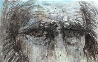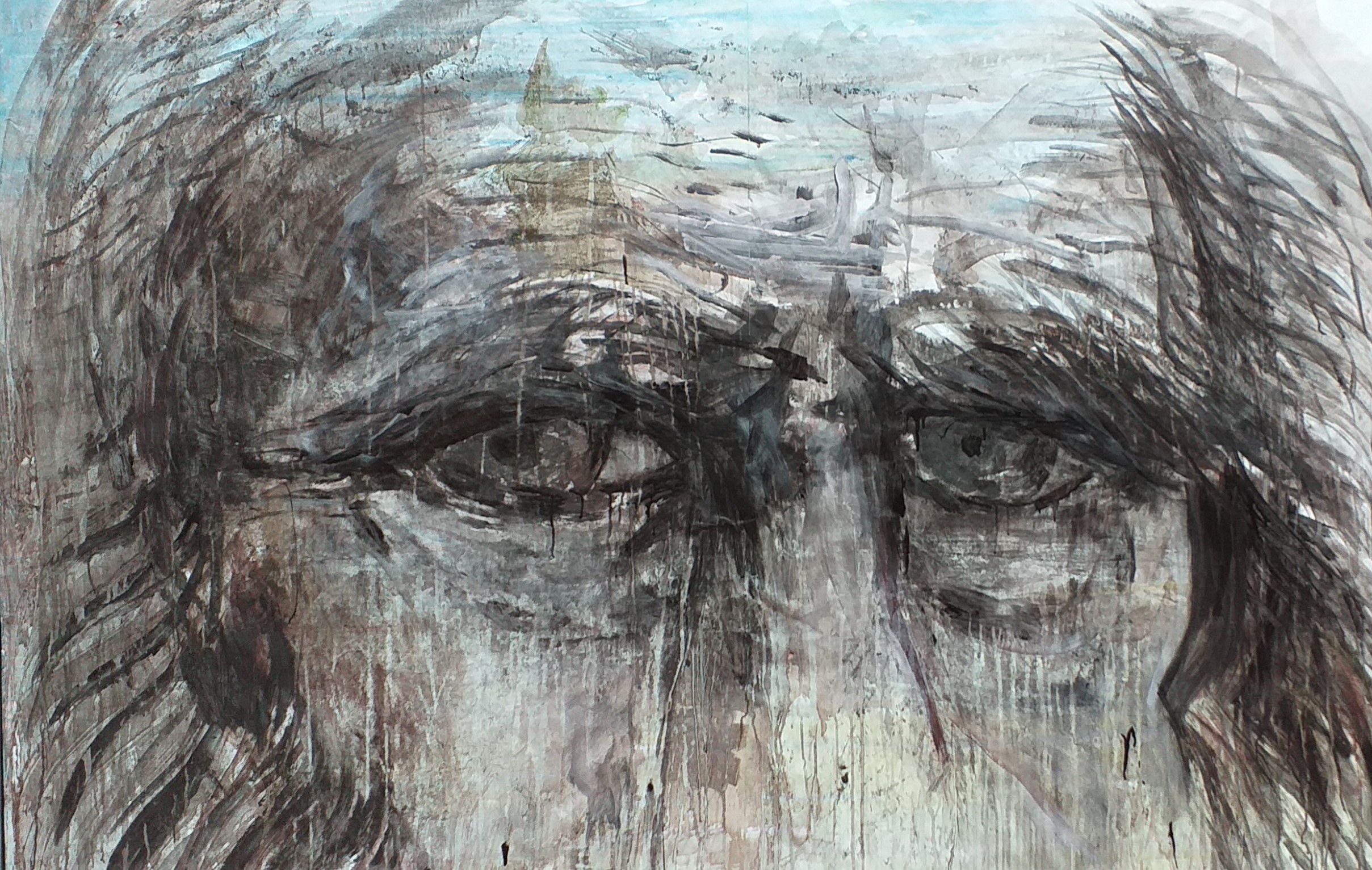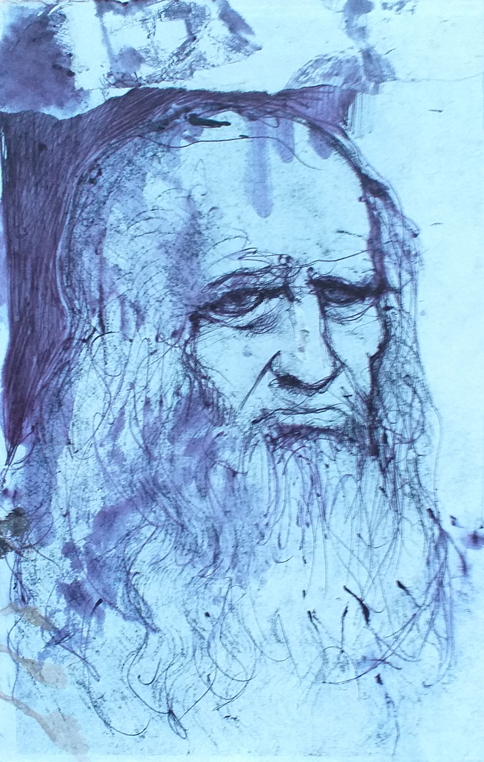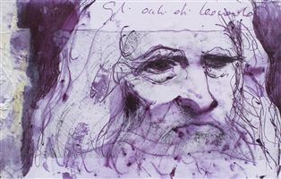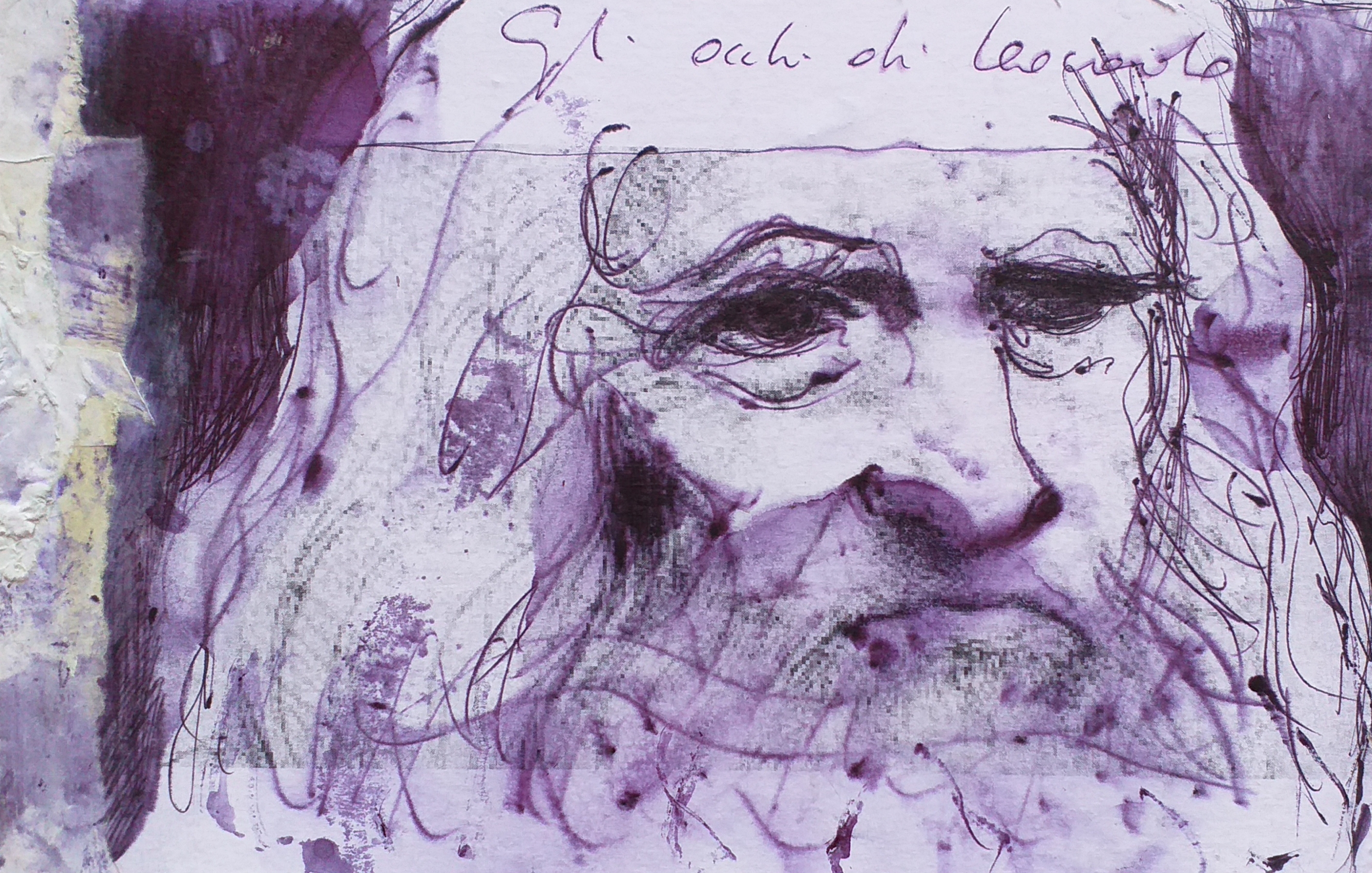 L’OPERA È STATA ESEGUITA IN PREPARAZIONE DELLA MOSTRA SU “MILANO E LEONARDO” PER WESTEND GALERIE DI FRANCOFORTE SUL MENO, IN OCCASIONE DEL QUINTO CENTENARIO DELLA MORTE DEL GENIO DI VINCI E IN CONCOMITANZA CON IL CINQUANTESIMO ANNIVERSARIO DEL GEMELLAGGIO DI MILANO CON LA CITTÀ TEDESCA. HO PRESO SPUNTO DAL CELEBRE DISEGNO DELL’AUTORITRATTO DI LEONARDO IN ETÀ MATURA E MI SONO CONCENTRATO SUL SUO SGUARDO. GLI OCCHI AVVOLTI DALLA SEMIOSCURITÀ: DIFFICILE INDAGARE NEL PROFONDO DI UNA PERSONALITÀ COMPLESSA ED ANCHE MISTERIOSA, CI SI PUÒ SOLO ACCOSTARE E INGRANDIRE UN “PARTICOLARE”, INTERROGANDOCI SU QUALI PENSIERI POTESSERO SCORRERE NELLA GRANDE MENTE. THE PAINTING WAS DONE IN PREPARATION FOR THE EXHIBITION ON "MILAN AND LEONARDO" FOR WESTEND GALERIE IN FRANKFURT, IN OCCASION OF THE 500TH ANNIVERSARY OF THE DEATH OF THE GENIUS THAT WAS DA VINCI AND IN CONJUNCTION WITH THE 50TH ANNIVERSARY OF THE TWINNING OF MILAN WITH THE GERMAN CITY. I TOOK INSPIRATION FROM THE FAMOUS SELF-PORTRAIT DRAWING THAT LEONARDO DID AS AN OLDER MAN AND I CONCENTRATED ON HIS EYES IN SEMIDARKNESS: IT IS DIFFICULT TO EXAMINE DEEPLY SUCH A COMPLEX AND MYSTERIOUS PERSON, WE CAN ONLY COMPARE AND MAGNIFY A "PARTICULAR" AND ASK OURSELVES WHAT THOUGHTS COULD HAVE RUN THROUGH THAT GREAT MIND.