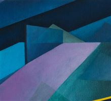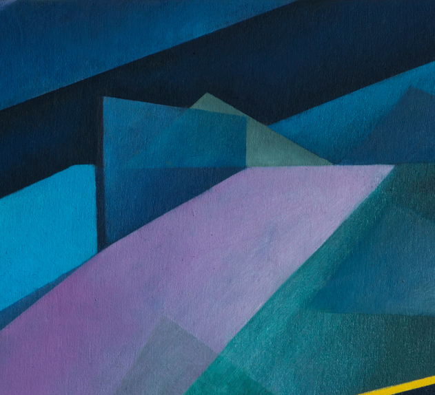 ES UNA OBRA GEOMÉTRICA QUE GENERA PROFUNDIDAD A TRAVÉS DE LOS PLANOS SUPERPUESTOS. DE COLORES PROFUNDOS PARECE SUSPENDERSE EN EL ESPACIO JUGANDO CON LAS TRANSPARENCIAS.