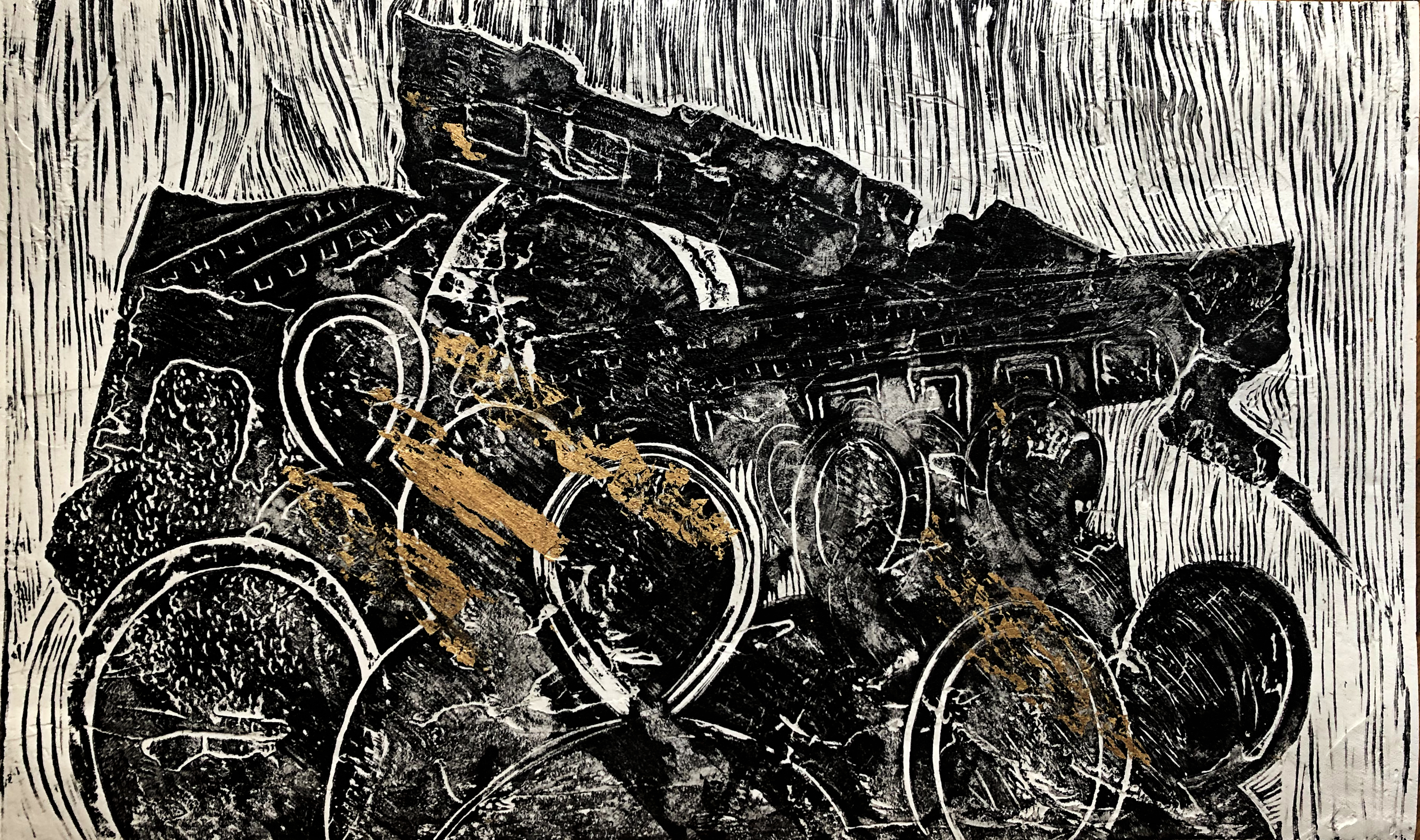 LINOCUT, PAPER, MODELING PASTE, POTAL EMBOSSING