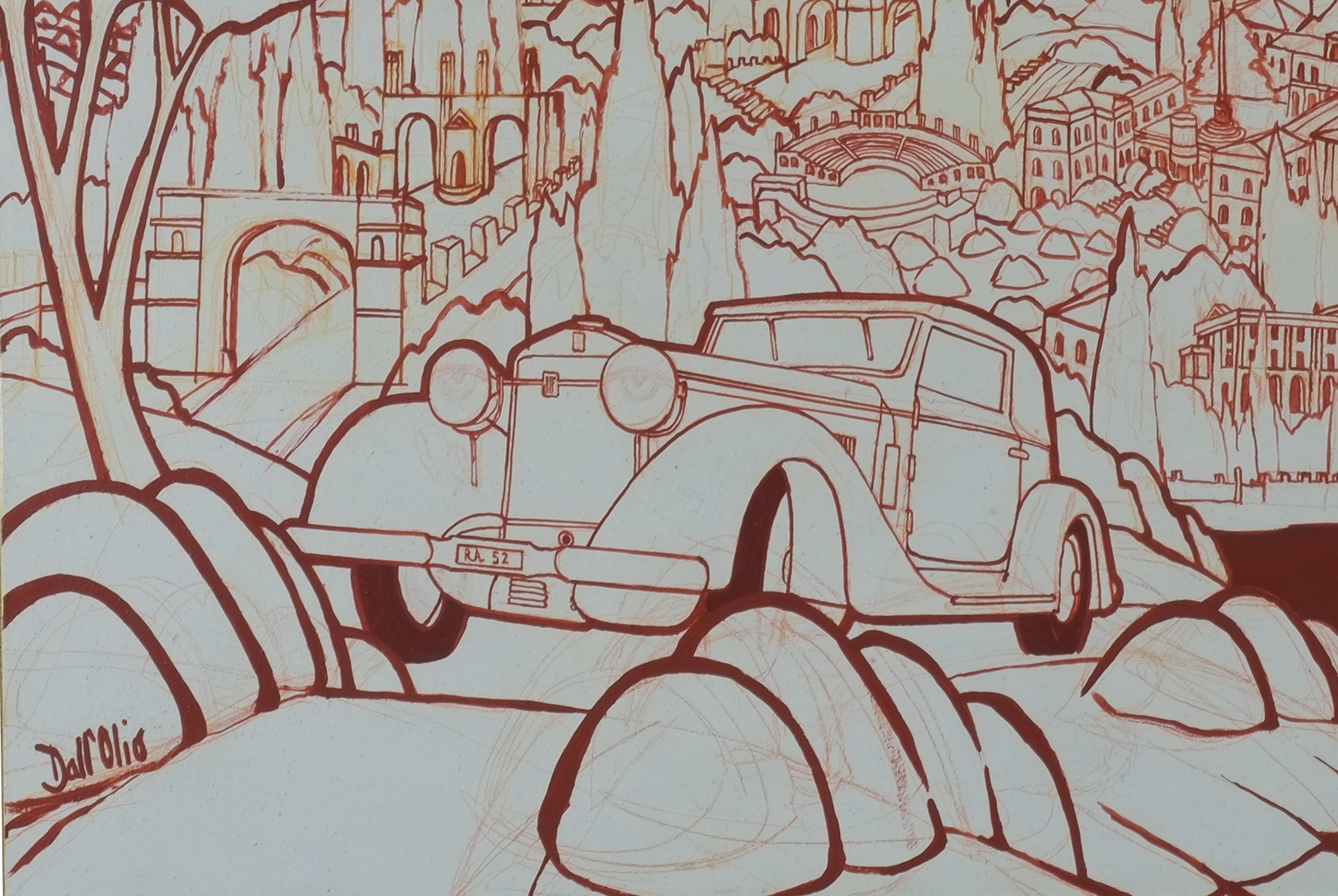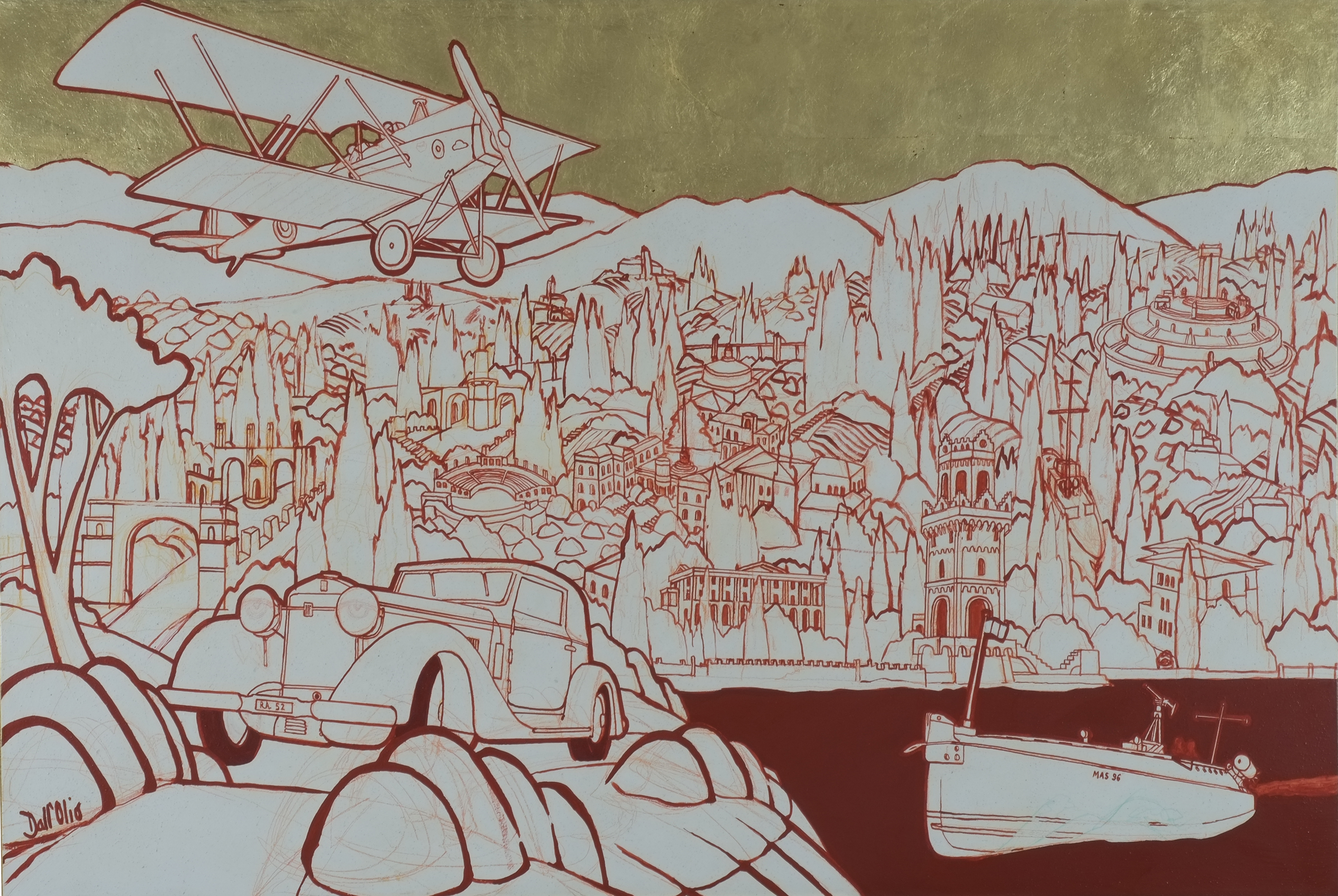 UNA RAPPRESENTAZIONE ONIRICA DEL COMPLESSO "IL VITTORIALE", CON TUTTI I RIFERIMENTI AL VATE E ALLE SUE IMPRESE.