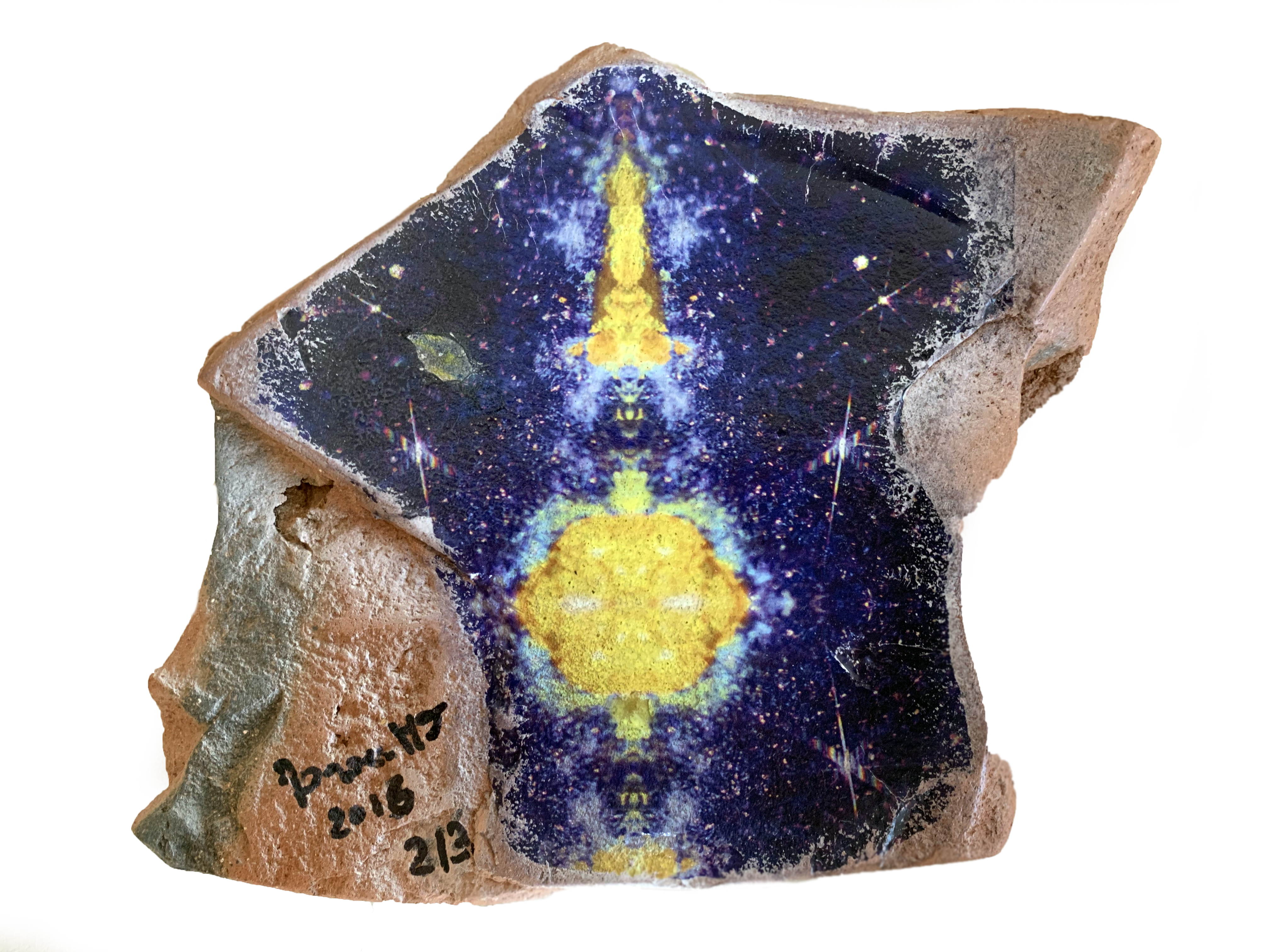 FROM A FRAGMENT OF MINERAL EMERGES A SYMBOLIC STARRY SKY THAT INTEGRATES WITH THE SUN GIVING RISE TO THE "DANCE" OF THE AUTUMNAL EQUINOX. THE AUTUMNAL EQUINOX WAS A SACRED DAY FOR THE ETRUSCANS AS ON THIS DAY DAY AND NIGHT HAVE THE SAME DURATION, THUS BECOMING A SYMBOL OF BALANCE AND EQUALITY.