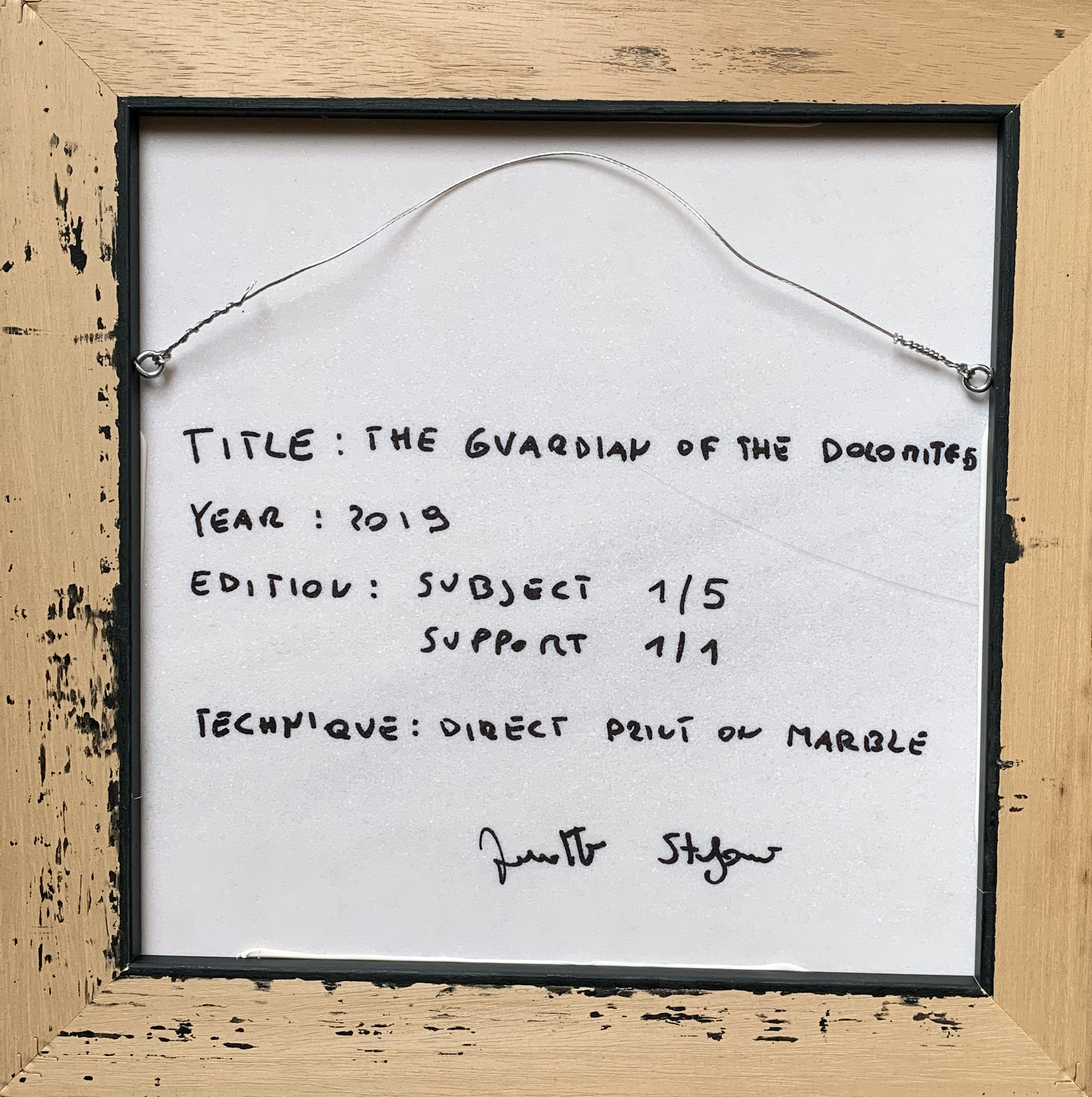about BIOGRAPHY Stefano Favaretto was born in Merano in 1969. His passion for photography led him right from the age of 15 to study photographic techniques and experiment with them. After his studies in human sciences, he worked for many years as a psychologist and psychotherapist, which certainly contributed to his personal growth as an artist and photographer always intent to capture human emotions in his pictures. This was how his artistic focus developed: observe and capture the human and spiritual essence behind a picture, in order to stimulate the observer to reflect and get in touch with his or her own emotions and interior life. His passion for photography and human narratives also spurred him to travel throughout the different continents. These journeys broadened his cultural knowledge and awareness, contributing to the evolution of his artistic work. A typical feature of Favaretto’s work is the use of elements taken from psychotherapy, such as metaphors and symbols and to photograph the real characters of local legends and tales. For Favaretto, a picture has to trigger emotions, and does this in a circular process that involves the observer as well as the work of art itself. It is the observer who projects his or her own meanings and interpretations onto the picture, making it his or her own. Only in this way a photograph can be considered successful. Stefano Favaretto is without doubt a creative, original artist who transforms photography into a sublime form of art, dedicating the uttermost attention and sensitivity even to the smallest details. MEETING MARBLE In 2014, Favaretto’s artistic and spiritual development leads him to devote himself entirely to photography, without ever loosing the deep connection between art and psychology. In 2014 he also gets in touch with a new geographic area, the province of Massa and Carrara, which leads to something like a real revolution in his way of doing art. The cultural variety of this region, its ancient legends originated from the world of marble as well as the deep artistic sensitivity of this area are a breeding ground for the development of new, original artistic techniques. The Alpi Apuane and Claudio Morelli, a craftsman with a profound knowledge of marble, introduce the artist to this fascinating material full of life. Marble becomes the main source of Favaretto’s artistic creations, transforming the artist’s work and way of doing photography. Printing his pictures on thin marble-layers is the starting point of a new artistic quest, where matter and photography work together to form unique works of art with a very strong visual impact. The photographs seem to be born from the matter itself, literally melting into them. "PHOTOGRAPHY THE INVISIVILE" Favaretto 's artistic research aims to investigate in a profound and systematic way the existence of an indispensable union between a so - called "invisible or invisible" universe made of energies, frequencies, vibrations, particular figures apparently not perceivable at all to the human eye and what instead represents the visible or more material world. You could also define the attempt to demonstrate the famous union between God understood as the energetic whole and nature, soul and cosmos and not physical matter, trying to remove that veil that has not always allowed us to see what is behind the matter and always around us in a single macrocosm. His attempt is to break down the boundaries between physical and non-physical by going deeper into human spirituality understood as the overcoming of the tangible matter towards something invisible from which life originates or from which the purpose of existing comes. His deep research investigates elements that have always been the bridge between the two supposed universes (physical and not physical). One of these elements is that of the myth intended as a tool to arrive at a greater understanding of what surrounds us. Through the narration of myth we connect real or really existed elements to surreal or fantastic elements that have been deposited in the collective unconscious for centuries and not for this reason considered not existing (think of the myth of Christmas or angels). In the myth according to Favaretto precious information is deposited on the rites, traditions and beliefs of a people, often dictated by a particular observation of reality. Exploring this mythical reality we can succeed in grasping or demonstrating that the human being has always tried to "go beyond" and to be able to confirm the existence of a universe we do not see. Favaretto tries to immortalise a reality that is there before our eyes, makes it emerge in the open and through the mirroring reveals it to the world in its entirety and form. This is how incredible figures emerge, sometimes scary because unknown to us and sometimes very similar to those described in mythological local and popular narratives. The use of materials on which to print such as rock, marble and wood is used to bring the viewer a continuity in the research and to maintain the physical-non-physical duality in the conceptual uniqueness. In the work printed on precious materials, the importance of nature as an engine of humanity and as a container of human existence is deliberately highlighted.