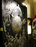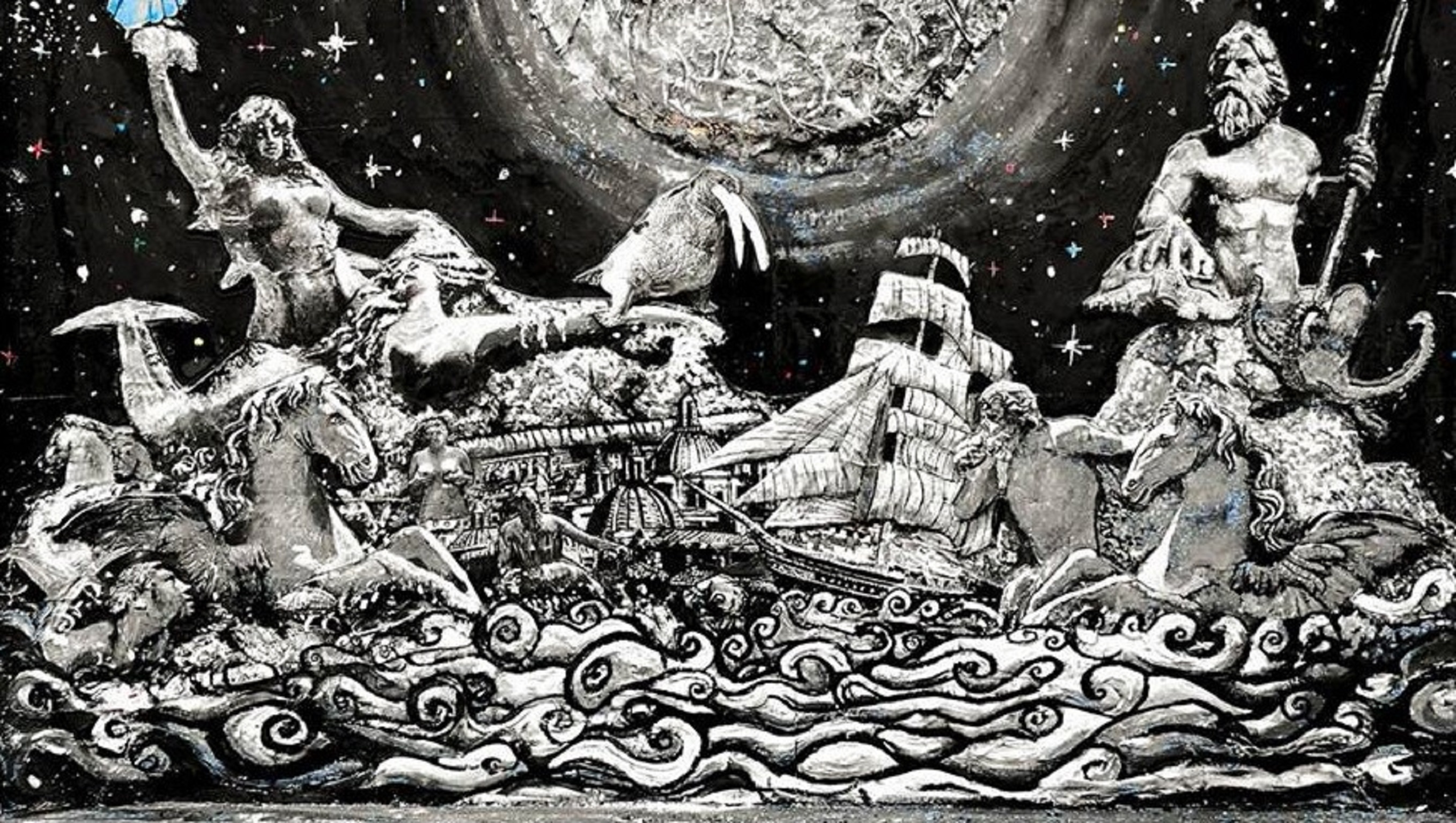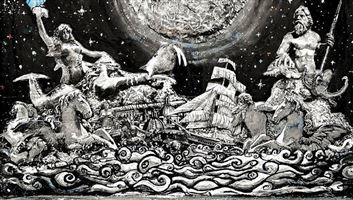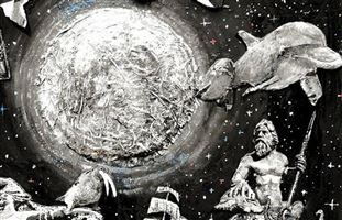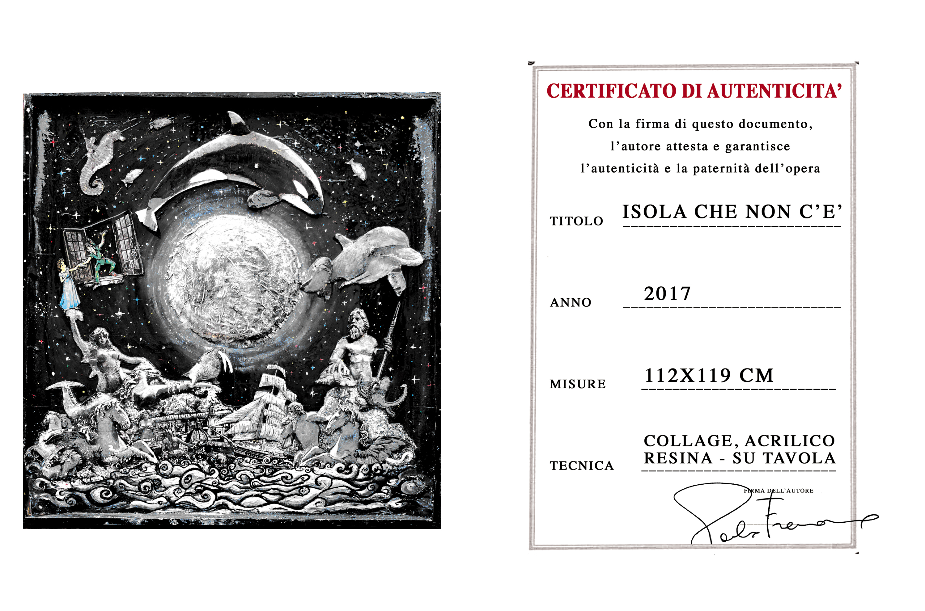 CHI NON CONOSCE LA STORIA DI PETER PAN E DELLA SUA WENDY CHE, MANO NELLA MANO, VOLANO VERSO L’ISOLA CHE NON C’È? È PROPRIO PERCHÉ NESSUNO L’HA MAI VISTA CHE OGNUNO LA CREA COME VUOLE. E ALLORA LASCIANDO ANDARE LIBERA L’IMMAGINAZIONE, FRANZOSO LA PENSA E RAPPRESENTA COME UN INSIEME CAOTICO DI RICHIAMI MARINI: PESCI, ORCHE, DELFINI E CAVALLI MARINI VOLANTI. UNA SORTA DI ATLANTIDE POSTA AL CENTRO DELL’UNIVERSO CON VISTA LUNA, DOVE I PESCI FLUTTUANO NEL CIELO STELLATO E SOTTO AL DI SOPRA DEI FLUTTI, A PELO D’ACQUA, EMERGONO SIRENE, TRITONI, TRICHECHI E CAVALLI ALATI, E UN VELIERO. L’UTILIZZO DEI COLORI BIANCO E NERO RENDONO L’ATMOSFERA DEL QUADRO ANCORA PIÙ ONIRICA. LE SUGGESTIVE ATMOSFERE VISIVE CONTENUTE NELLE OPERE DI PAOLO FRANZOSO HANNO IL POTERE DI RAPIRE LO SGUARDO DELLA PERSONA CHE CI SI TROVA DI FRONTE, DI INCURIOSIRE IL SUO ANIMO E INDURLA A FARE UN VIAGGIO ALL’INTERNO DI QUELLO SQUARCIO DI MONDO DOVE IMMAGINI, COLORI, PAROLE DI VITA, OGGETTI E MATERIALI RICICLATI TENTANO DI SOVRAPPORSI PER USCIRE DALLA TELA STESSA. LE SUE OPERE SI CARATTERIZZANO PER LE LORO “CAOTICHE ATMOSFERE”, IN CUI PERDERSI PER POI RITROVARSI IN QUALCHE ANGOLO DEL QUADRO, NEL RESPIRO SILENZIOSO DEL PROPRIO EQUILIBRIO. IL DONO PIÙ GRANDE CHE POSSIEDE PAOLO FRANZOSO È QUELLO DI SAPER DARE NUOVA VITA ALLE COSE, REINTERPRETANDOLE, CON ENORME SLANCIO CREATIVO. ***************************** WHO DOES NOT KNOW THE STORY OF PETER PAN AND HIS WENDY WHO, HAND IN HAND, FLY TO NEVERLAND? IT IS PRECISELY BECAUSE NO ONE HAS EVER SEEN THAT EVERYONE CREATES IT AS HE WANTS. AND THEN LETTING GO OF THE IMAGINATION FREE, FRANZOSO THINKS OF IT AND REPRESENTS IT AS A CHAOTIC SET OF MARINE RECALLS: FISH, KILLER WHALES, DOLPHINS AND FLYING SEA HORSES. A SORT OF ATLANTIS PLACED AT THE CENTER OF THE UNIVERSE WITH A MOON VIEW, WHERE THE FISH FLOAT IN THE STARRY SKY AND BELOW FROM THE WAVES, ON THE SURFACE OF THE WATER, SIRENS, TRITONS, WALRUSES AND WINGED HORSES, AND A SAILING SHIP EMERGE. THE USE OF BLACK AND WHITE COLORS MAKE THE ATMOSPHERE OF THE PAINTING EVEN MORE DREAMLIKE. THE EVOCATIVE VISUAL ATMOSPHERE CONTAINED IN THE COLLAGES OF PAOLO FRANZOSO, HAVE THE POWER TO ENCHANT THE VIEWER, TO INTRIGUE HIS/HER MIND AND LEAD HIM/HER TO MAKE A WANDER INSIDE THAT PIECE OF WORLD WHERE IMAGES, COLORS, WORDS OF LIFE, OBJECTS AND RECYCLED MATERIALS TRY TO OVERLAP TO COME OUT FROM THE CANVAS ITSELF. HIS ARTWORKS ARE CHARACTERIZED BY THEIR "CHAOTIC ATMOSPHERE", IN WHICH GETTING LOST TO FIND OURSELVES IN SOME CORNER OF THE PICTURE, IN THE SILENT BREATH OF OUR OWN BALANCE. THE GREATEST GIFT THAT PAUL FRANZOSO HAS, IT IS THE ABILITY TO GIVE NEW LIFE TO THINGS, REINTERPRETING THEM, WITH ENORMOUS CREATIVE ENERGY.