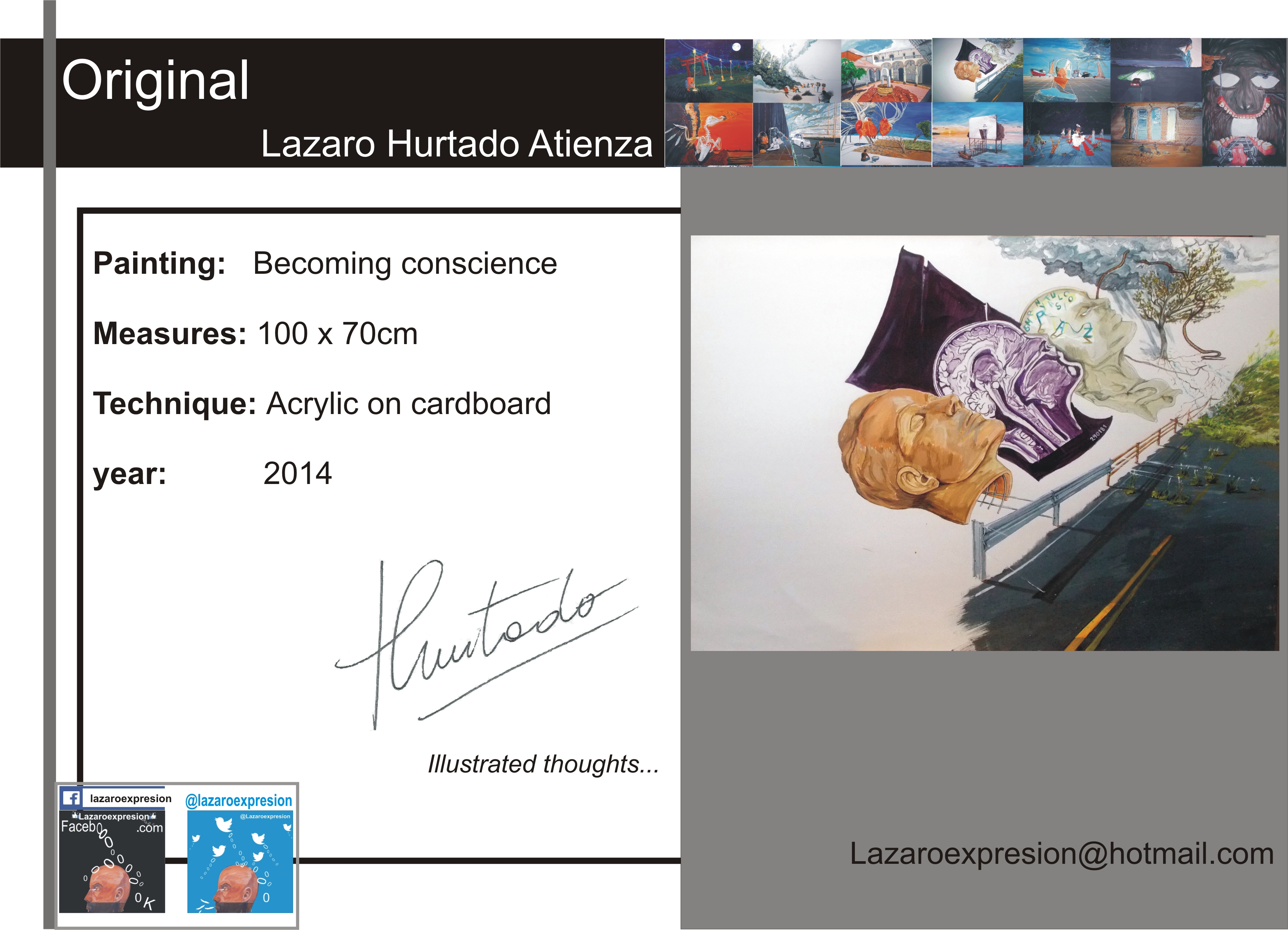 Lázaro Hurtado is an argentinian artist currently living in Buenos Aires, Argentina, were he works .Graduate Fine arts “ Bachillerato de Bellas Artes “ affiliated National University of La Plata. He states than more than an artist, he is a thinker.His work born from the necesity of expressing thoughts and conceptions of the World that surrounds him. The images he offers us project humanistic messages, the nature of mankind, the possible and the ridiculous. He makes comments about reality and the social forces and orders, but at the same time he demostrates a playful face, ironic in some cases. The transcription of inner alchemies into paintings of surrealist character wakes a curiosity in the viewer. The spectators would often find themselves been tickle by the ideas and concepts on reality and human behaviour that he seems to contemplate and rebuilt on his mind. The images you see are the working mechanics of a brain on a mind made world... Media: www.facebook.com/lazaroexpresion http://lazaro-hurtado.pixels.com http://www.redbubble.com/people/lazarohurtado https://twitter.com/lazaroexpresion 2019 _ Bio-Art Contest winner Excellence Prize . Seoul, South korea _ Premios a la Creación Artistica. Universidad de Belgrano. 27° Edición. Buenos Aires 2018 _ Artplu and Artron Art Auction: Western Modern & Contemporary Art _Picturesque Hotel . Wuxi, China 2017 _ X-Power Gallery Taipei . Taiwan _ Shenzhen International Art Fair. China _ Secoo 707 Deco Art Festival. China _ Artplu & Yidian China Art Auction:Western Contemporary Art Auction. China _ Art Nanjing- Baijiahu Art Mansion. China _ Art revolution Taipei 2017. Taiwan _ Get Art Museum Taipei, Taiwan 2016 _ Eggo Art Fair . Buenos Aires. _ ‘Thoughts’ curated by Tintin Yue JCCAC . Hong Kong _ 22 Salon de Pintura Palermo Viejo. Newbery Central Gallery. _ ‘Out of Gallery’ Hilton Hotel. Nanjin City. China _ Art Suning Plaza Collective Exhibition China _ Exposition at School Freud Lacan La Plata . Argentina 2015 _ Premio a la Creación Artística Universidad de Belgrano Buenos Aires _ Ar(t)gentina and Friends Castello Di Coazzolo (AT) Piemonte Italy _ Ar(t)gentina and Friends Pinacoteca Civica Camo ? Museo di Camo (CN) Piemonte Italy _ Ar(t)gentina and Friends Badnight Café Temporary Home Art Gallery Turín Italy _ ‘Illustrated thoughts’ Instituto de Capacitación Política. Argentina _ Museum of Contemporary Art, Artplu Shanghái, China _ 'Art on the Clouds', The Blue Skyline, Camphorwood, Wuxi City, China. _ " VIDEO KILLED THE ART STAR #2 "Spazio Arte 24, Via Corte 24, Dogliani Italy _ Tokyo International Art Fair Digital showcase Quest Hall Harajuku , Tokyo, Japan . _ Art Revolution Taipei 2015 Taiwan _ Arte La Plata stand unipersonal Argentina _ ‘ Colours of the World’ International Collective Exposition Bellas Artes. Museum And Academy., Bs As Argentina _ Motor Village Gallery City of Turin. Italy_ _ "il colori latini nell'arte contemporanea" Mondovi Piazza City of Mondovi, Cuneo, Italy 2014 _ ‘Becoming Conscience’ Cultural Centre Islas Malvinas Bs.As. Argentina _ 160th Stock Market Anniversary Buenos Aires. Argentina _ 1st Salón Municipal de Ilustration .La Plata . Argentina _ That Damned Show Detroit 2014 with a fineart canvas print ‘Lost sometimes’ USA