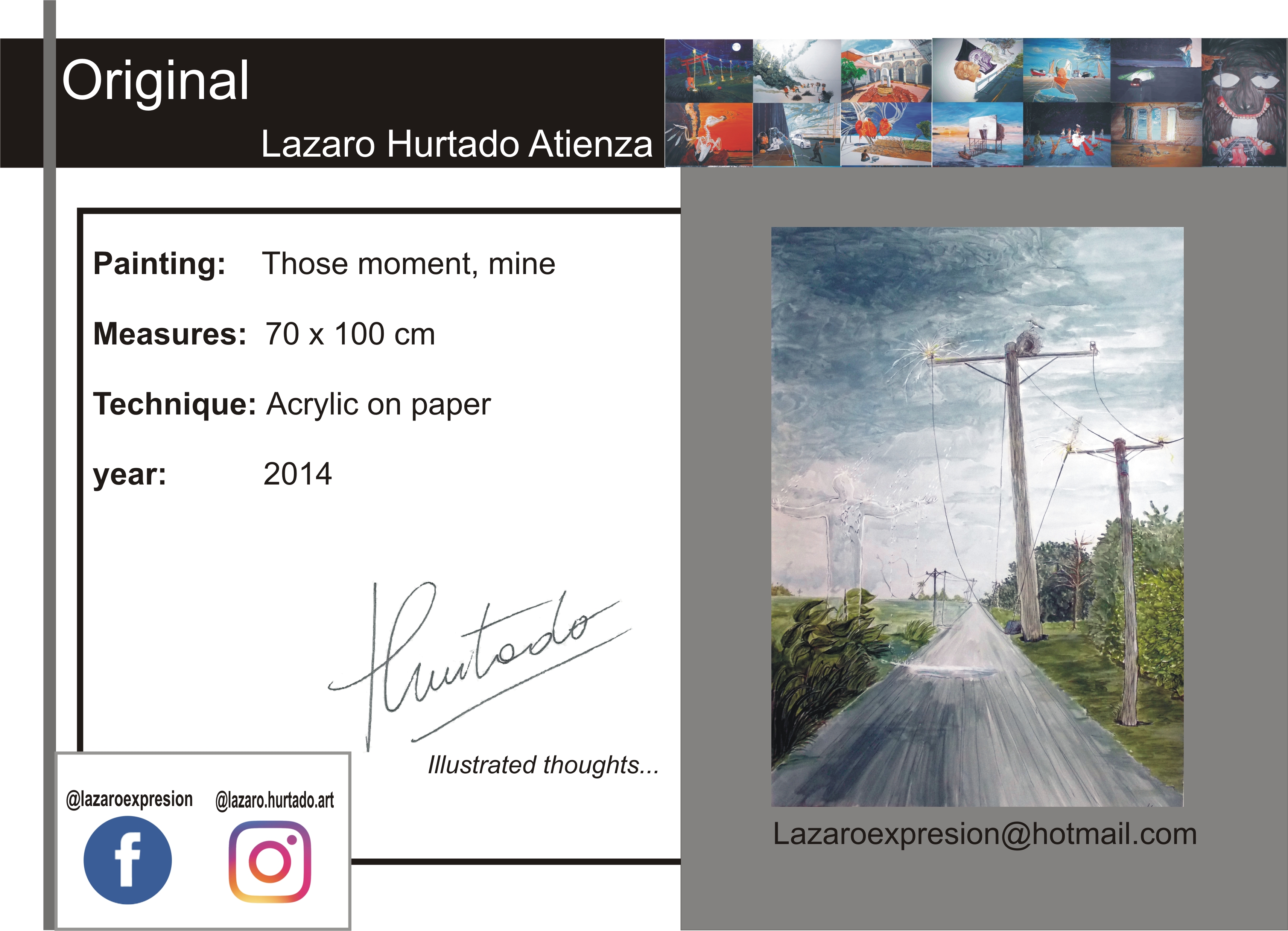 ILLUSTRATED THOUGHTS, ORIGINAL PAINTING BY LAZARO HURTADO ARTWORK IS SENT ROLLED IN A REINFORCED PVC TUBE , CERTIFICATE OF AUTHENTICITY. PROCESSING 2 WORKING DAYS.