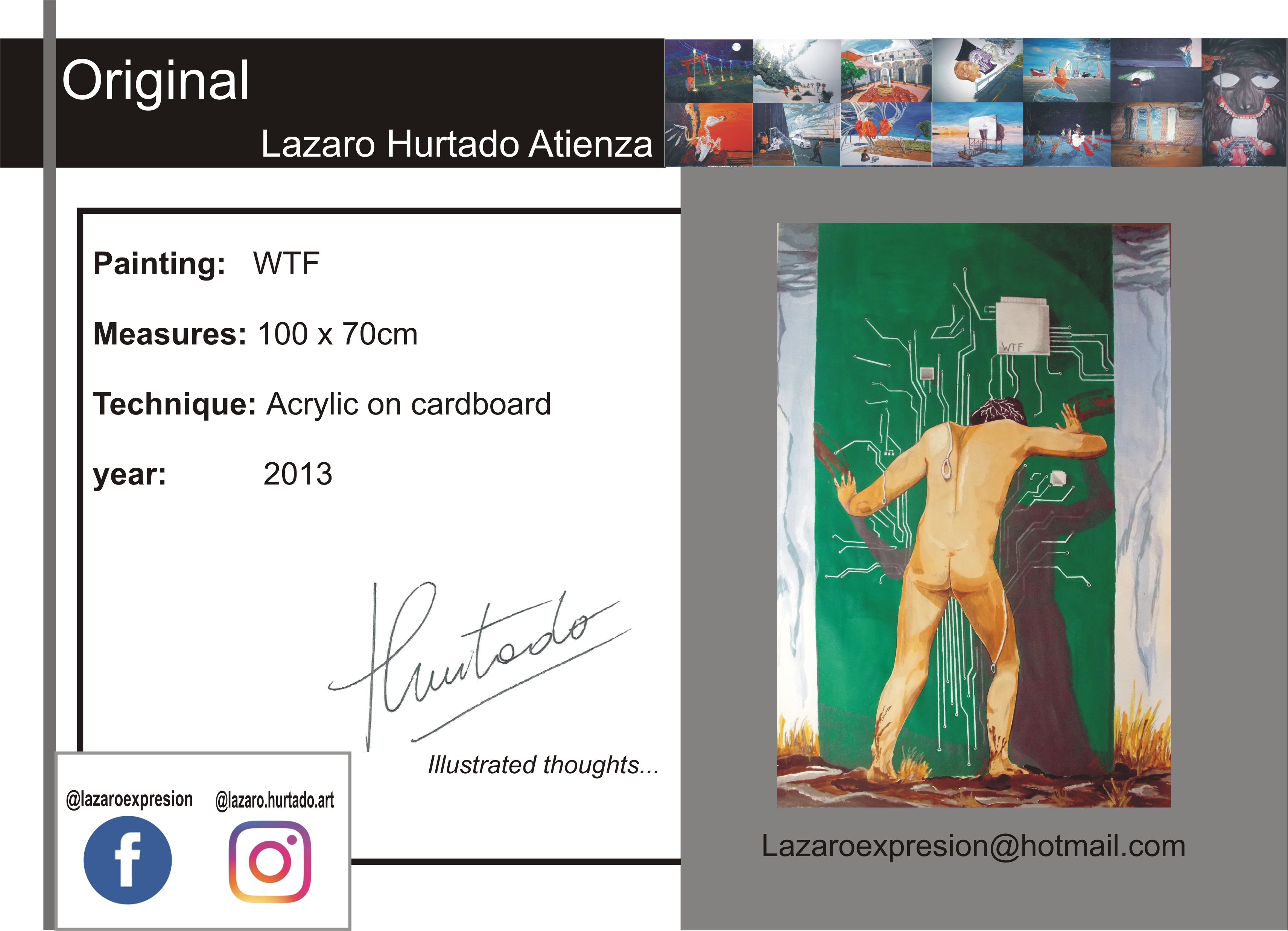 Lázaro Hurtado is an argentinian artist currently living in Buenos Aires, Argentina, were he works .Graduate Fine arts “ Bachillerato de Bellas Artes “ affiliated National University of La Plata. He states than more than an artist, he is a thinker.His work born from the necesity of expressing thoughts and conceptions of the World that surrounds him. The images he offers us project humanistic messages, the nature of mankind, the possible and the ridiculous. He makes comments about reality and the social forces and orders, but at the same time he demostrates a playful face, ironic in some cases. The transcription of inner alchemies into paintings of surrealist character wakes a curiosity in the viewer. The spectators would often find themselves been tickle by the ideas and concepts on reality and human behaviour that he seems to contemplate and rebuilt on his mind. The images you see are the working mechanics of a brain on a mind made world... Media: www.facebook.com/lazaroexpresion http://lazaro-hurtado.pixels.com http://www.redbubble.com/people/lazarohurtado https://twitter.com/lazaroexpresion 2019 _ Bio-Art Contest winner Excellence Prize . Seoul, South korea _ Premios a la Creación Artistica. Universidad de Belgrano. 27° Edición. Buenos Aires 2018 _ Artplu and Artron Art Auction: Western Modern & Contemporary Art _Picturesque Hotel . Wuxi, China 2017 _ X-Power Gallery Taipei . Taiwan _ Shenzhen International Art Fair. China _ Secoo 707 Deco Art Festival. China _ Artplu & Yidian China Art Auction:Western Contemporary Art Auction. China _ Art Nanjing- Baijiahu Art Mansion. China _ Art revolution Taipei 2017. Taiwan _ Get Art Museum Taipei, Taiwan 2016 _ Eggo Art Fair . Buenos Aires. _ ‘Thoughts’ curated by Tintin Yue JCCAC . Hong Kong _ 22 Salon de Pintura Palermo Viejo. Newbery Central Gallery. _ ‘Out of Gallery’ Hilton Hotel. Nanjin City. China _ Art Suning Plaza Collective Exhibition China _ Exposition at School Freud Lacan La Plata . Argentina 2015 _ Premio a la Creación Artística Universidad de Belgrano Buenos Aires _ Ar(t)gentina and Friends Castello Di Coazzolo (AT) Piemonte Italy _ Ar(t)gentina and Friends Pinacoteca Civica Camo ? Museo di Camo (CN) Piemonte Italy _ Ar(t)gentina and Friends Badnight Café Temporary Home Art Gallery Turín Italy _ ‘Illustrated thoughts’ Instituto de Capacitación Política. Argentina _ Museum of Contemporary Art, Artplu Shanghái, China _ 'Art on the Clouds', The Blue Skyline, Camphorwood, Wuxi City, China. _ " VIDEO KILLED THE ART STAR #2 "Spazio Arte 24, Via Corte 24, Dogliani Italy _ Tokyo International Art Fair Digital showcase Quest Hall Harajuku , Tokyo, Japan . _ Art Revolution Taipei 2015 Taiwan _ Arte La Plata stand unipersonal Argentina _ ‘ Colours of the World’ International Collective Exposition Bellas Artes. Museum And Academy., Bs As Argentina _ Motor Village Gallery City of Turin. Italy_ _ "il colori latini nell'arte contemporanea" Mondovi Piazza City of Mondovi, Cuneo, Italy 2014 _ ‘Becoming Conscience’ Cultural Centre Islas Malvinas Bs.As. Argentina _ 160th Stock Market Anniversary Buenos Aires. Argentina _ 1st Salón Municipal de Ilustration .La Plata . Argentina _ That Damned Show Detroit 2014 with a fineart canvas print ‘Lost sometimes’ USA