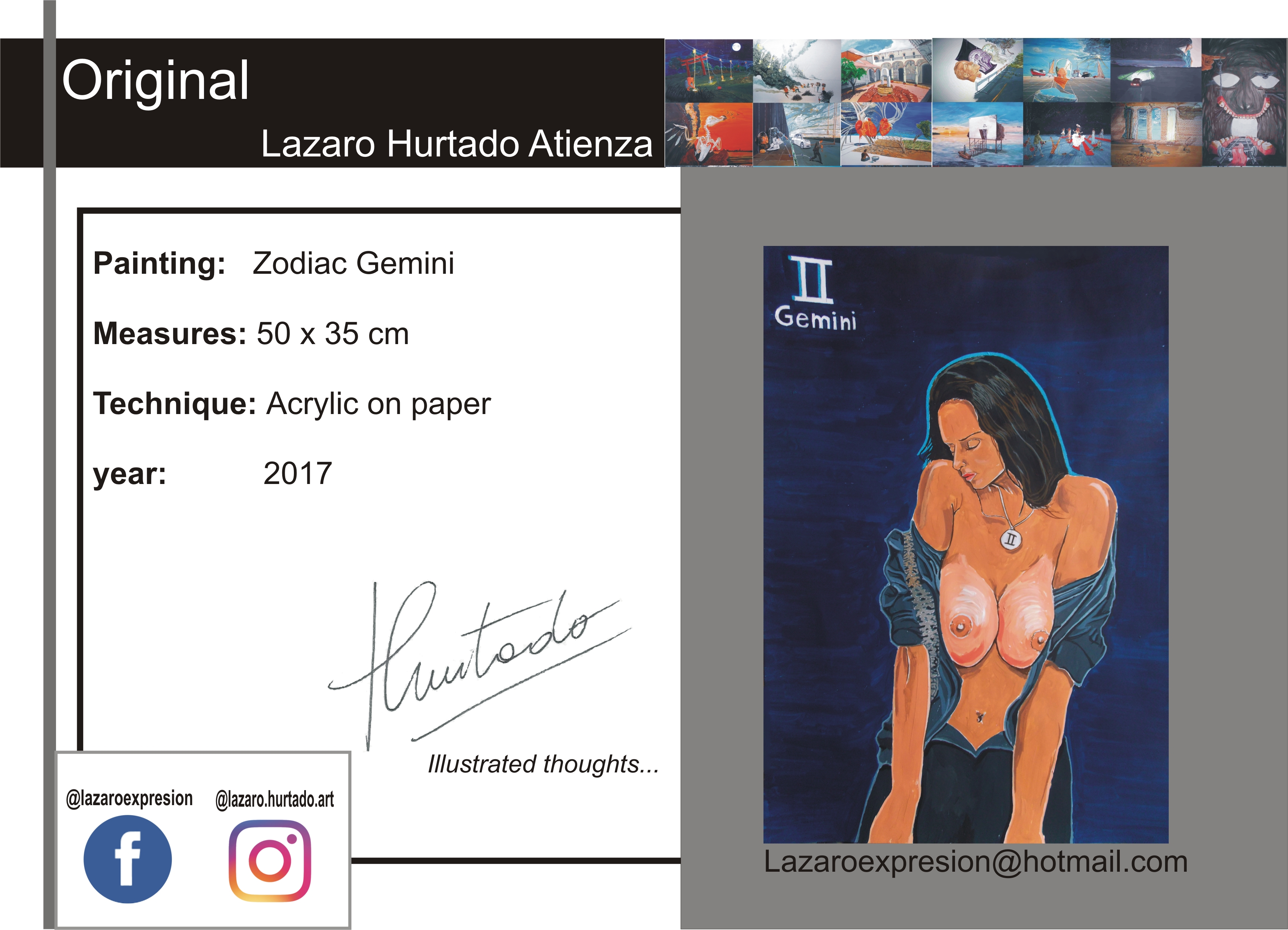 ILLUSTRATED THOUGHTS, ORIGINAL PAINTING BY LAZARO HURTADO ARTWORK IS SENT ROLLED IN A REINFORCED PVC TUBE , CERTIFICATE OF AUTHENTICITY. PROCESSING 2 WORKING DAYS.