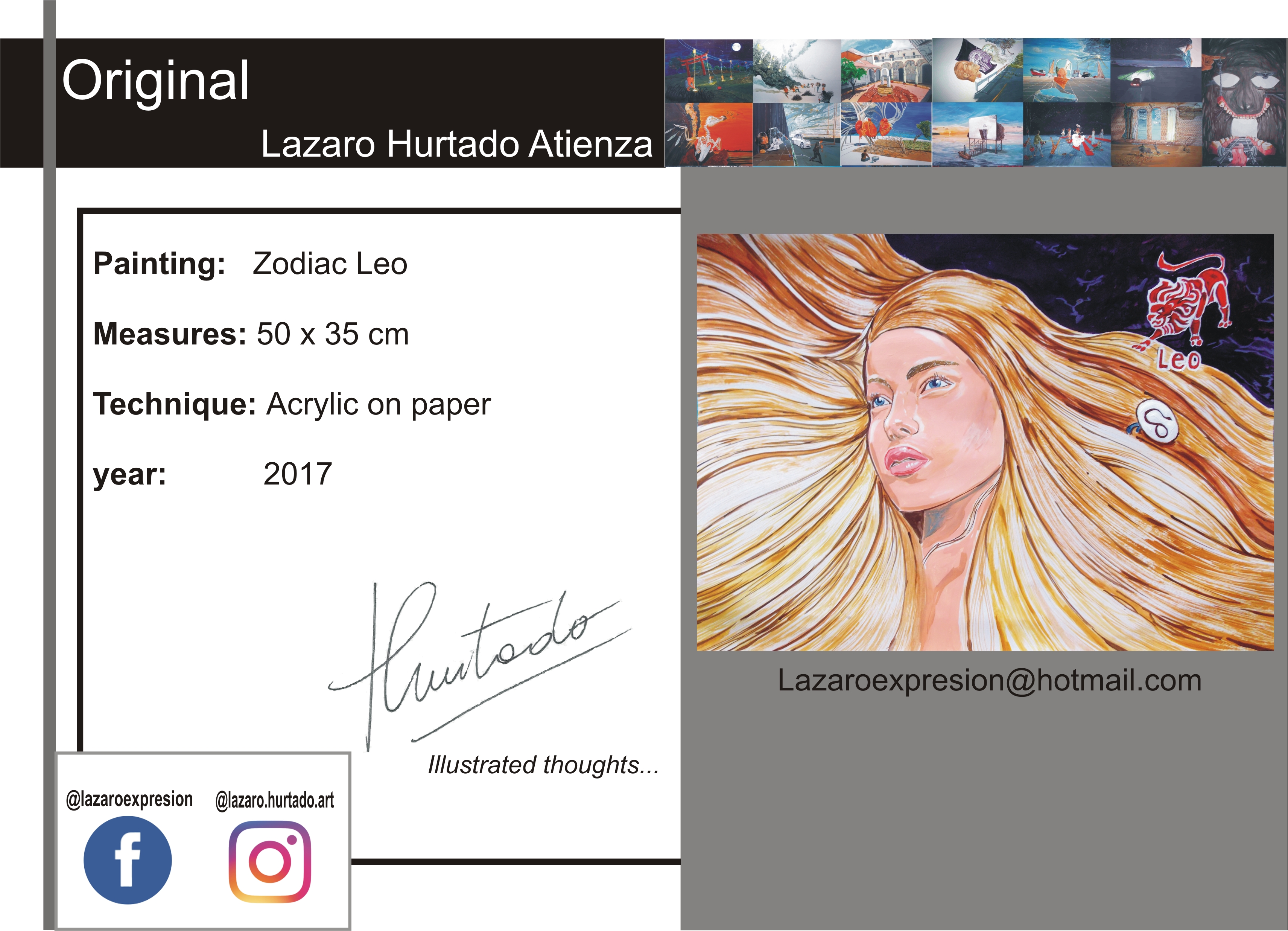 ILLUSTRATED THOUGHTS, ORIGINAL PAINTING BY LAZARO HURTADO ARTWORK IS SENT ROLLED IN A REINFORCED PVC TUBE , CERTIFICATE OF AUTHENTICITY. PROCESSING 2 WORKING DAYS.