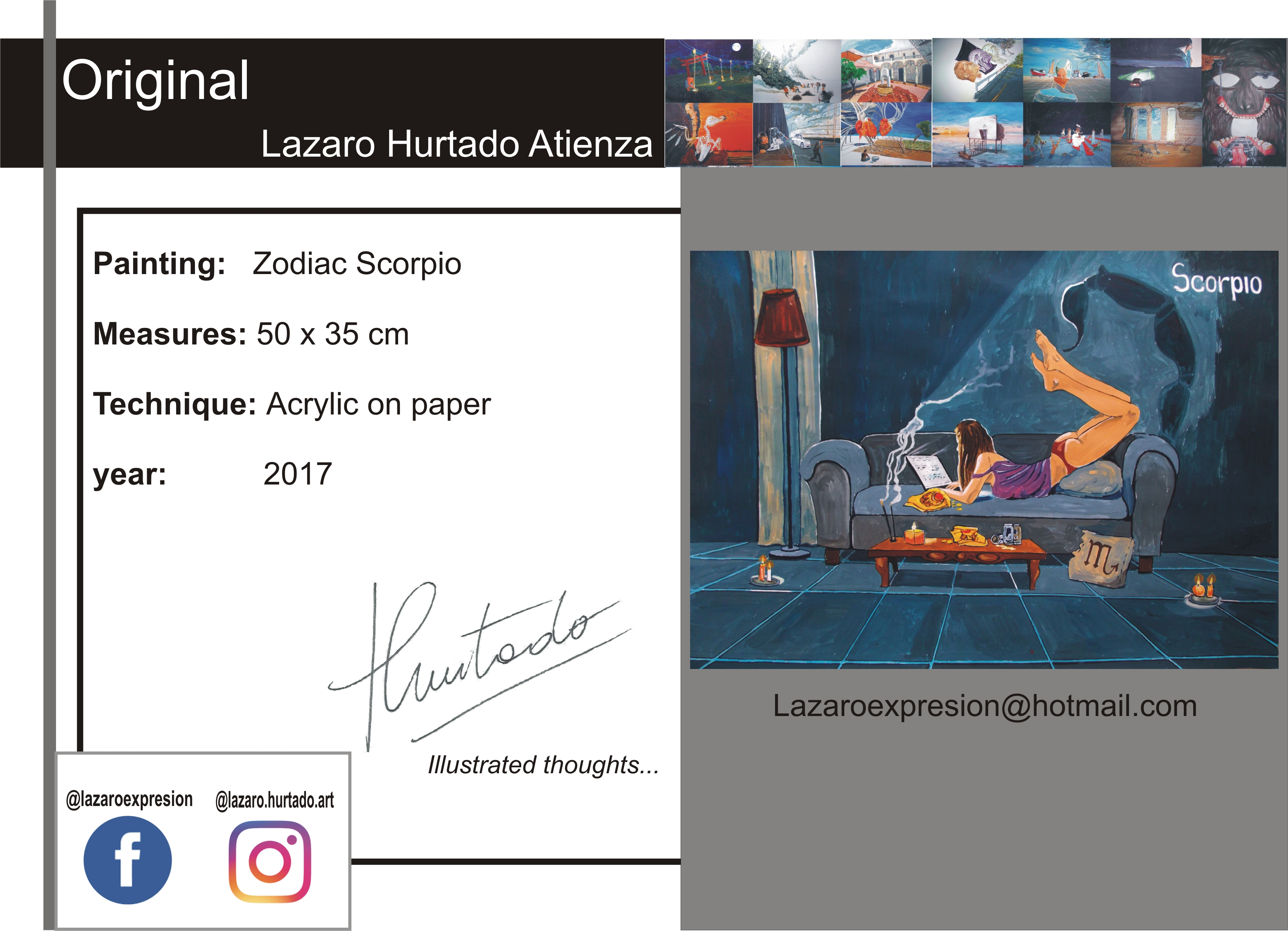 ILLUSTRATED THOUGHTS, ORIGINAL PAINTING BY LAZARO HURTADO ARTWORK IS SENT ROLLED IN A REINFORCED PVC TUBE , CERTIFICATE OF AUTHENTICITY. PROCESSING 2 WORKING DAYS.