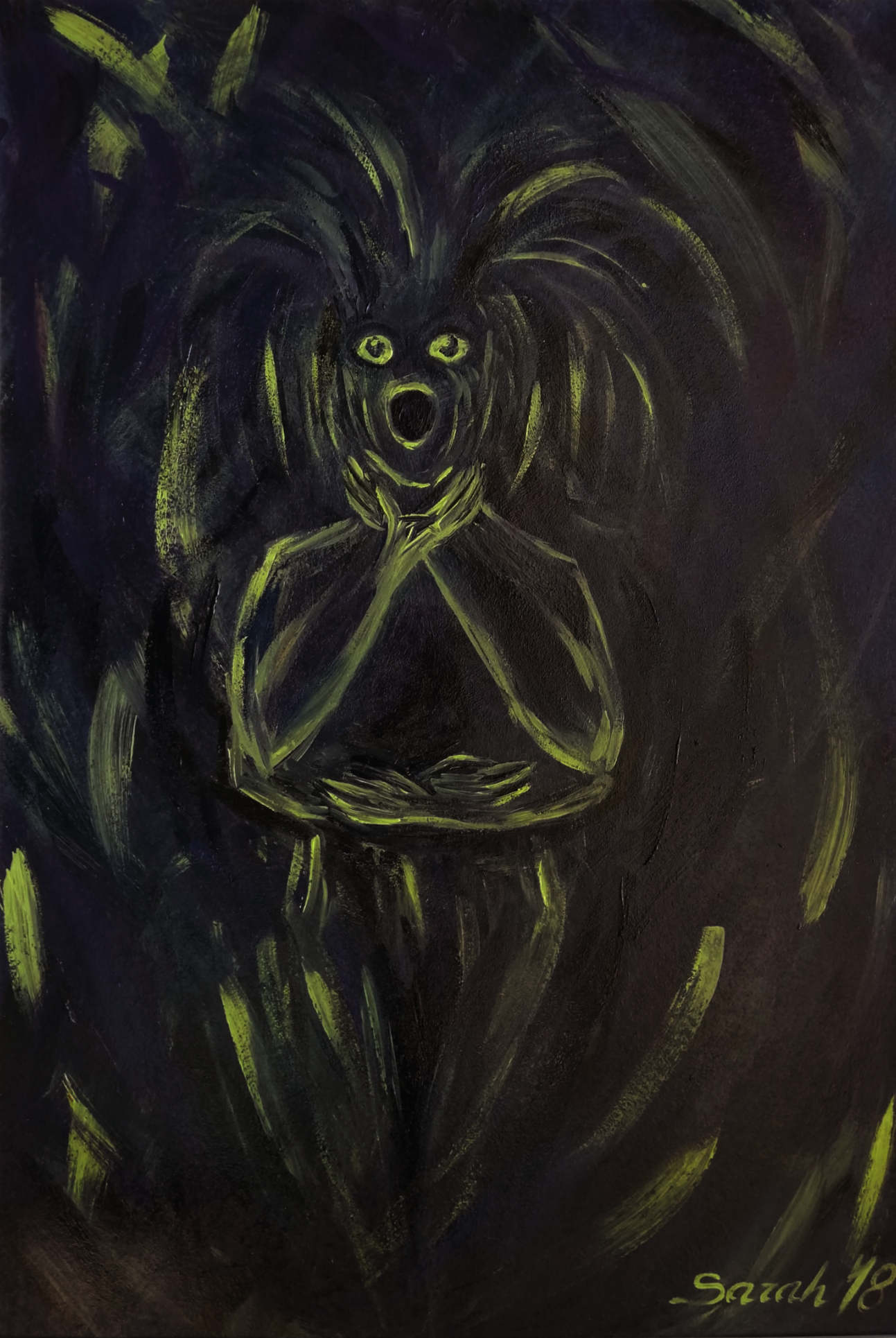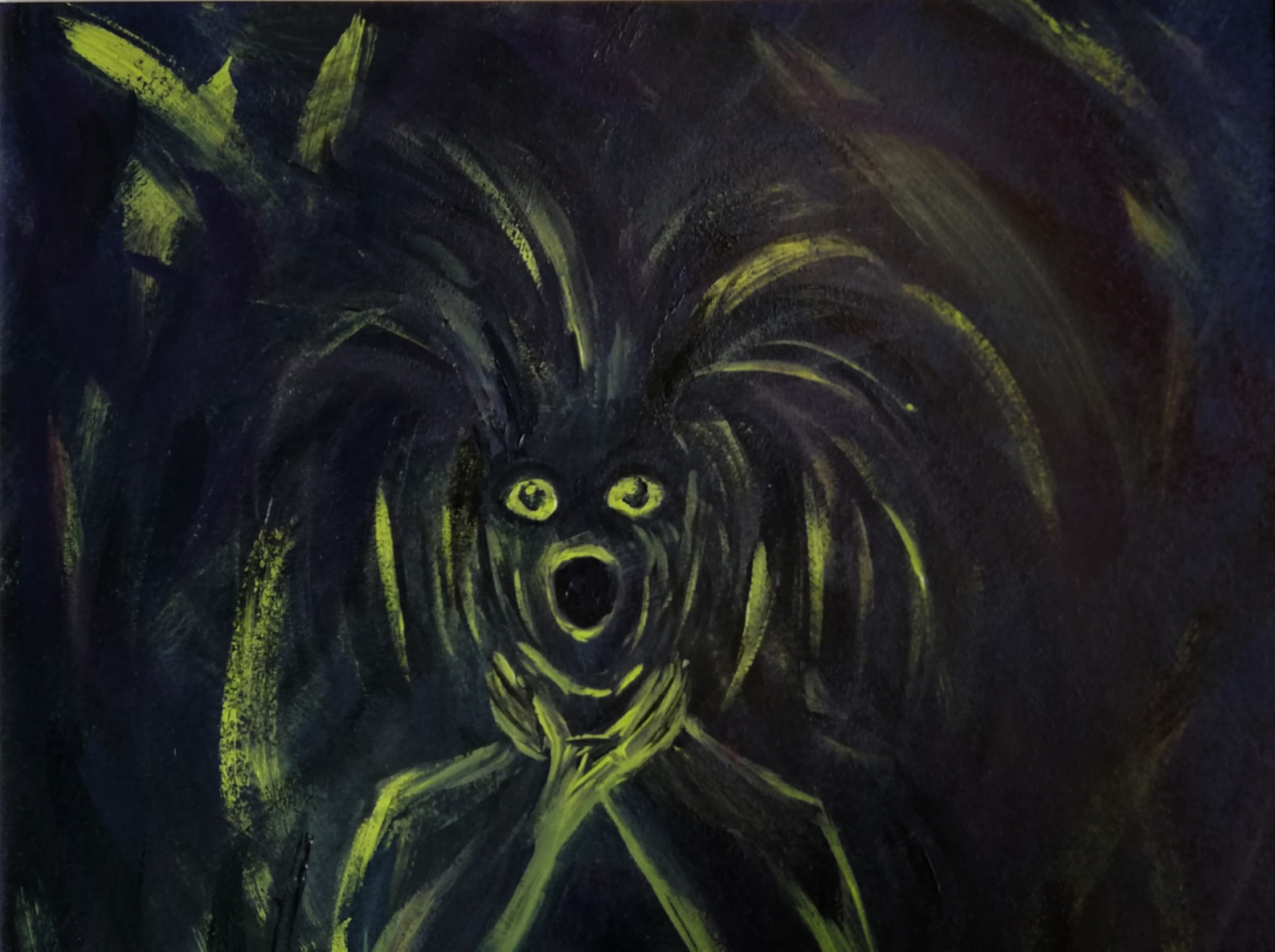QUANDO SIAMO PRESI DAL PANICO, CI SENTIAMO SOFFOCARE, SENTIAMO UNA MORSA ALLA PANCIA, LE NOSTRE GAMBE TREMANO A TAL PUNTO CHE NON CI SORREGGONO PIÙ, E L'UNICA COSA CHE POSSIAMO FARE È FAR RISUONARE IL NOSTRO GRIDO, MENTRE IL RESTO DEL CORPO È PARALIZZATO. IL PANICO SI MANIFESTA COME L'INCONTRO TRA LA PAURA VIOLACEA E GLI SCHIZZI IMPROVVISI GIALLI ACIDI DI FOLLIA, IN MODO REPENTINO, PRENDENDO IL SOPRAVVENTO DEL NOSTRO CORPO E OFFUSCANDO LA NOSTRA RAZIONALITÀ.