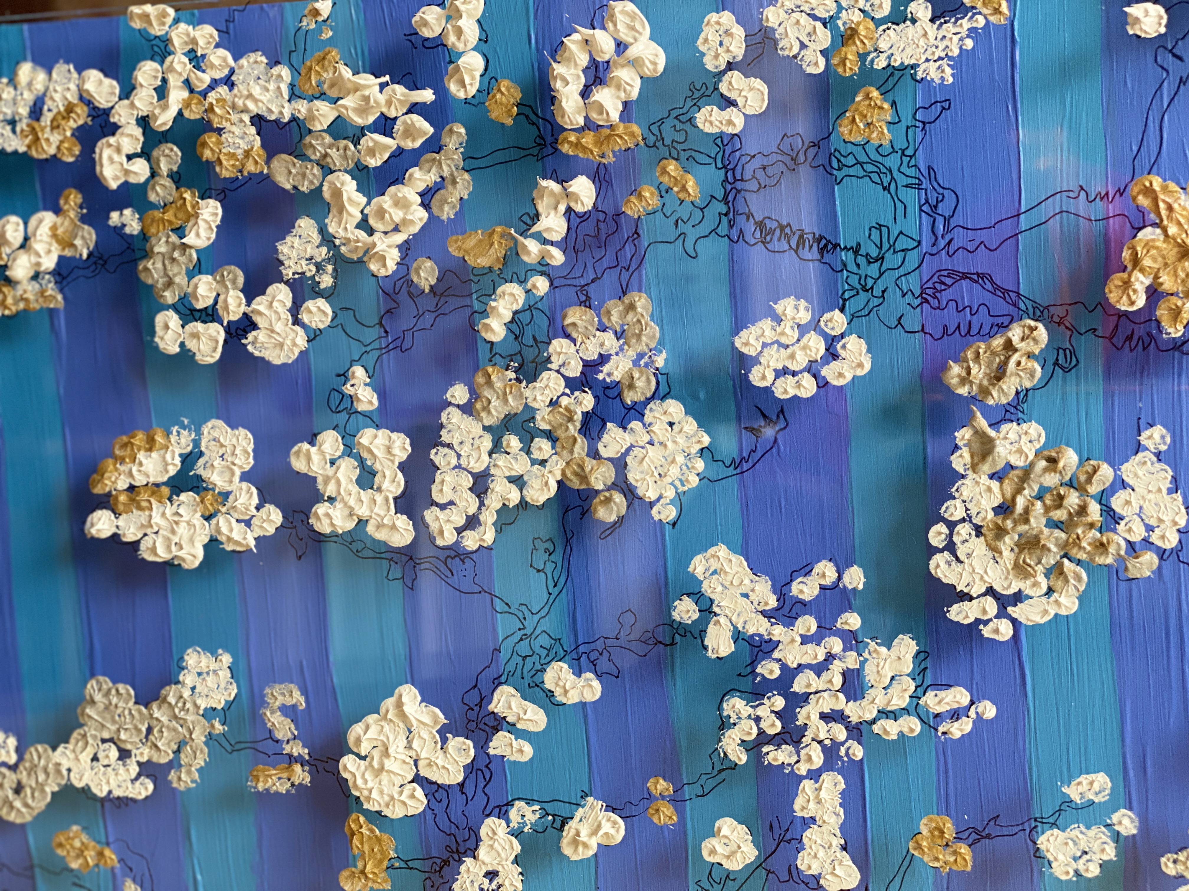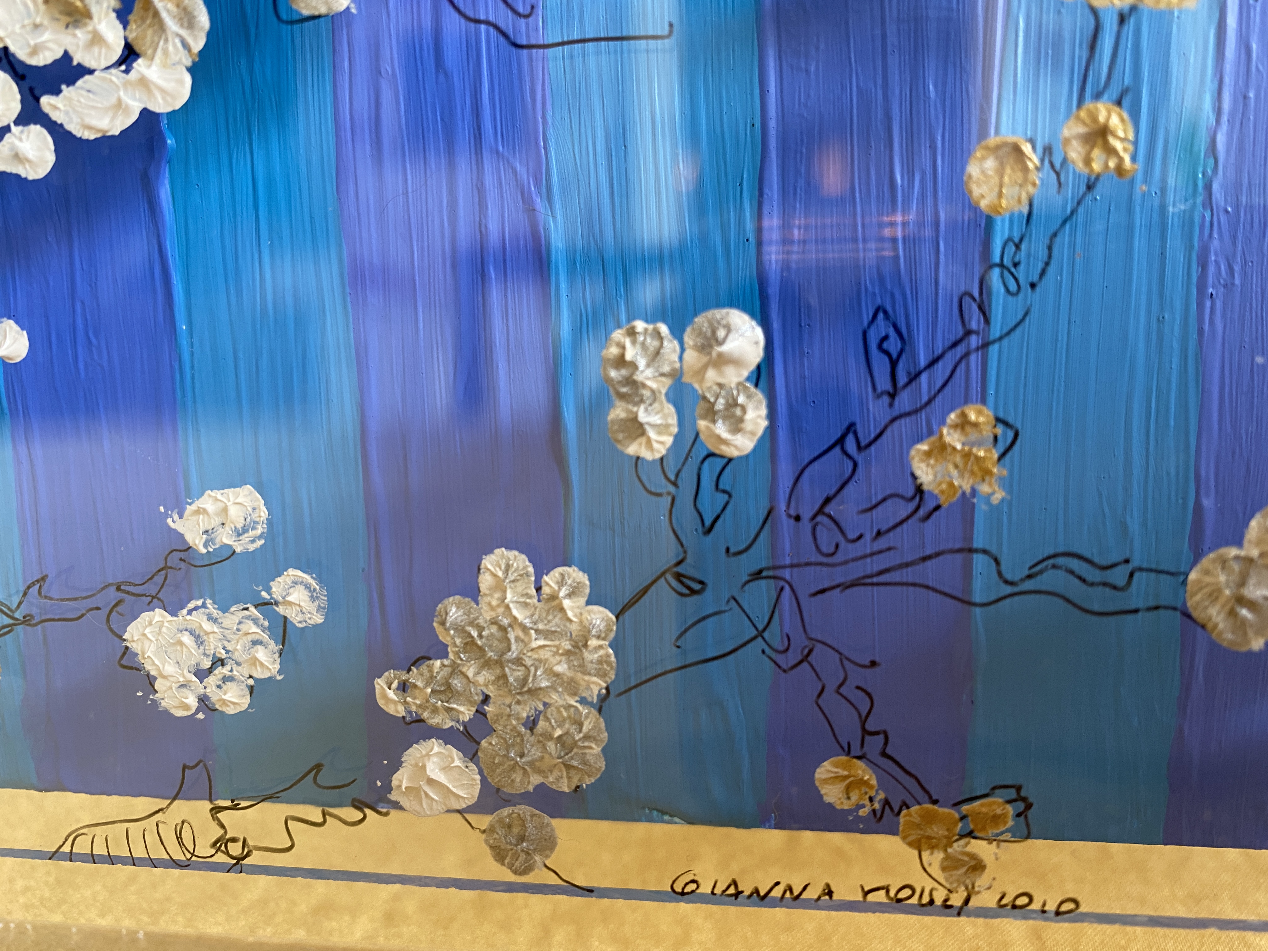 FIORI DI MANDORLO 2 HTTP://WWW.GIANNAMOISE.COM/PITTURA2011.HTML 2010 - 18CM X 45CM, OIL AND ACRYLIC ON PLEXIGLAS “LA PRIMA VIRTÙ DI UN DIPINTO È DI ESSERE UNA FESTA PER GLI OCCHI.” EUGÉNE DELACROIX I LAVORI DI GIANNA MOISE RAPPRESENTANO ALBERI DI MANDORLO FIORITI, DIPINTI MINUZIOSAMENTE SU LASTRE DI PLEXIGLAS CHE PROIETTANO LA LORO AGGRAZIATA OMBRA SU UN FONDO COLORATO. SONO OPERE DELIBERATAMENTE ISPIRATE AL VAN GOGH PIÙ ORIENTALE, QUELLO AFFASCINATO DALLA FOLGORANTE VISIONE DEI MAESTRI XILOGRAFICI GIAPPONESI. IN QUESTA LIBERA INTERPRETAZIONE DI UN MOTIVO ICONOGRAFICO TRADIZIONALE È EVIDENTE COME L’IMITAZIONE DELLA NATURA PER L’ARTISTA PASSI SEMPRE ATTRAVERSO IL FILTRO DELL’ARTE. GIANNA MOISE ASSECONDA LA NATURA DEI MATERIALI, PIEGANDO IL PROPRIO MODUS OPERANDI ALLE NECESSITÀ DEL CASO. QUANDO DIPINGE SUL CARTONE TRAFORATO, USA COLORI CHE POSSANO RIEMPIERE IL LARGO RETICOLO DI FORI CHE NE COMPONGONO LA TRAMA. SE USA IL PLEXIGLAS ABBINATO ALLA TELA, È ATTENTA A ESALTARNE LE VIRTÙ DI TRASPARENZA E LUCENTEZZA. IN SOSTANZA, NELLA RICERCA DELL’ARTISTA OGNI MATERIALE E OGNI TECNICA SI PIEGANO ALLE ESIGENZE DI UNO SPERIMENTALISMO DOLCE, LA CUI ORIGINE RISIEDE FORSE IN UN ATTEGGIAMENTO DI ORIENTALE CONDISCENDENZA VERSO L’INTIMA ESSENZA DI TUTTE LE COSE. GIANNA MOISE È UNA CREATRICE NATURALE. NON È UN CASO CHE PROPRIO LA NATURA, CON LE SUE FORME, SIA ANCHE LA PRINCIPALE FONTE D’INSPIRAZIONE DELL’ARTISTA ED È IL RIFLESSO DI UNA PARTICOLARE SENSIBILITÀ COGNITIVA. DA ABSTRACT DI “MORE IS MORE” DI IVAN QUARONI "THE FIRST VIRTUE OF A PAINTING IS TO BE A FEAST FOR THE EYES." EUGÉNE DELACROIX A FEW OF THE GIANNA MOISE’S WORKS REPRESENT FLOWERING ALMOND TREES, METICULOUSLY PAINTED ON PLEXIGLAS PLATES WHICH PROJECT THEIR GRACEFUL SHADOW ON A COLORED BACKGROUND. THEY ARE WORKS DELIBERATELY INSPIRED BY THE MOST ORIENTAL VAN GOGH, THE ONE FASCINATED BY THE DAZZLING VISION OF THE JAPANESE WOODCUTTERS. IN THIS FREE INTERPRETATION OF A TRADITIONAL ICONOGRAPHIC MOTIF, IT IS EVIDENT THAT THE IMITATION OF NATURE FOR THE ARTIST ALWAYS PASSES THROUGH THE FILTER OF ART. GIANNA MOISE FOLLOWS THE NATURE OF THE MATERIALS, BENDING HER OWN MODUS OPERANDI TO THE NEEDS OF THE CASE. WHEN SHE PAINTS ON THE PERFORATED CARDBOARD, SHE USES COLORS THAT CAN FILL THE WIDE GRID OF HOLES THAT MAKE UP THE TEXTURE. IF SHE USES PLEXIGLAS COMBINED WITH CANVAS, SHE IS CAREFUL TO ENHANCE ITS VIRTUES OF TRANSPARENCY AND SHINE. BASICALLY, IN THE ARTIST'S RESEARCH EVERY MATERIAL AND EVERY TECHNIQUE BEND TO THE NEEDS OF A SWEET EXPERIMENTALISM, WHOSE ORIGIN PERHAPS LIES IN AN ATTITUDE OF ORIENTAL CONDESCENSION TOWARDS THE INTIMATE ESSENCE OF ALL THINGS. GIANNA MOISE IS A NATURAL CREATOR. IT IS NO COINCIDENCE THAT NATURE, WITH ITS FORMS, IS ALSO THE MAIN SOURCE OF INSPIRATION FOR THE ARTIST AND IS THE REFLECTION OF A PARTICULAR COGNITIVE SENSITIVITY. FROM ABSTRACT OF "MORE IS MORE" BY IVAN QUARONI