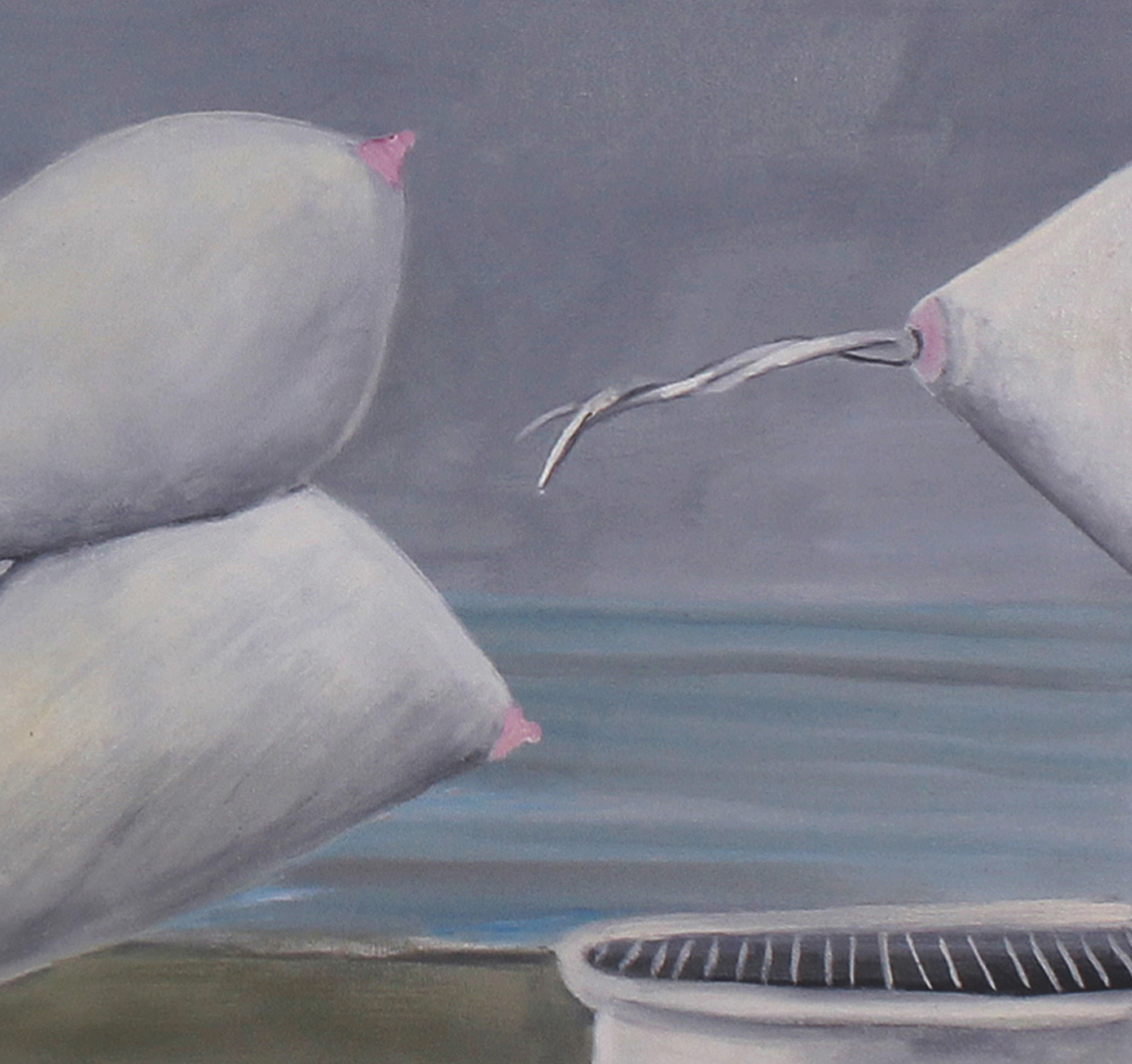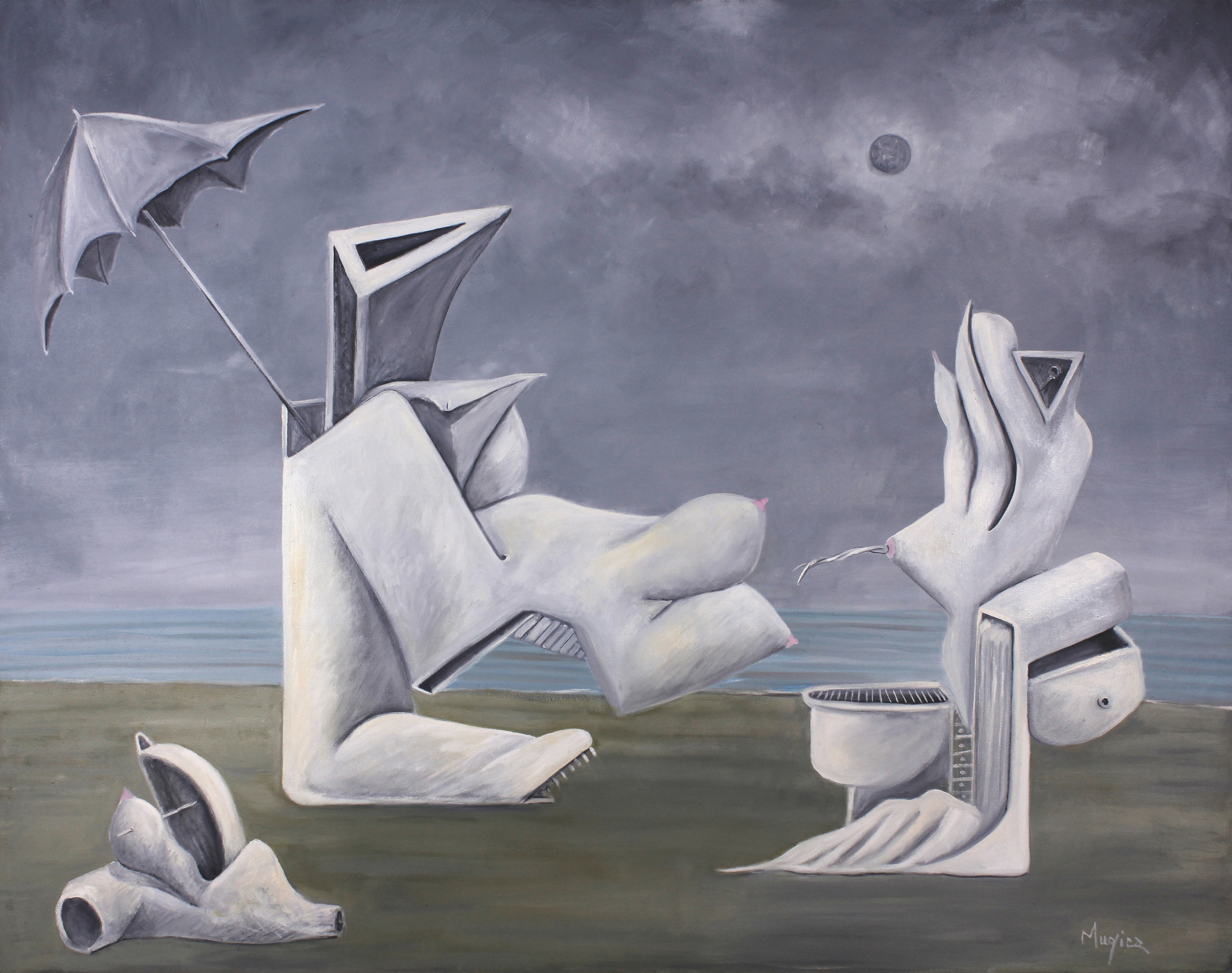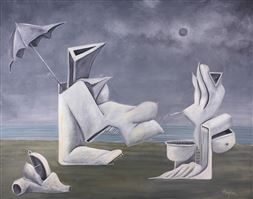 EN ESTAS CRUELES NATURALEZAS MUERTAS, CONSTRUIDAS AL MODO DEL BRAQUE CUBISTA, SE ADIVINAN TAMBIÉN EXTRAÑOS FRUTOS SUGERIDOS POR LAM, Y OBJETOS DE JERARQUÍA CHIRIQUIANA, QUE LUCHAN EN ESTAS TELAS DE EVOCACIÓN ONÍRICA, POR EMPEZAR A SER PERSONAJES ANTE NUESTRA VISIÓN. ALGO DE DEVASTADO TIENEN ESTOS OBJETOS PERSONAJE, QUE NOS SEDUCEN EN UN DOBLE JUEGO DE ATRACCIÓN-REPULSIÓN.