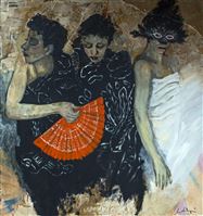 MÁSCARAS Y SILENCIOS, ES UNA OBRA QUE FORMA PARTE DE UNA SERIE DEL MISMO NOMBRE. EN ELLA JUEGA LO TEATRAL, LO ÍNTIMO Y LO FEMENINO. EL MUNDO INTERIOR QUE TRASUNTA TRAS LA MÁSCARA: EL SECRETO Y EL SILENCIO.