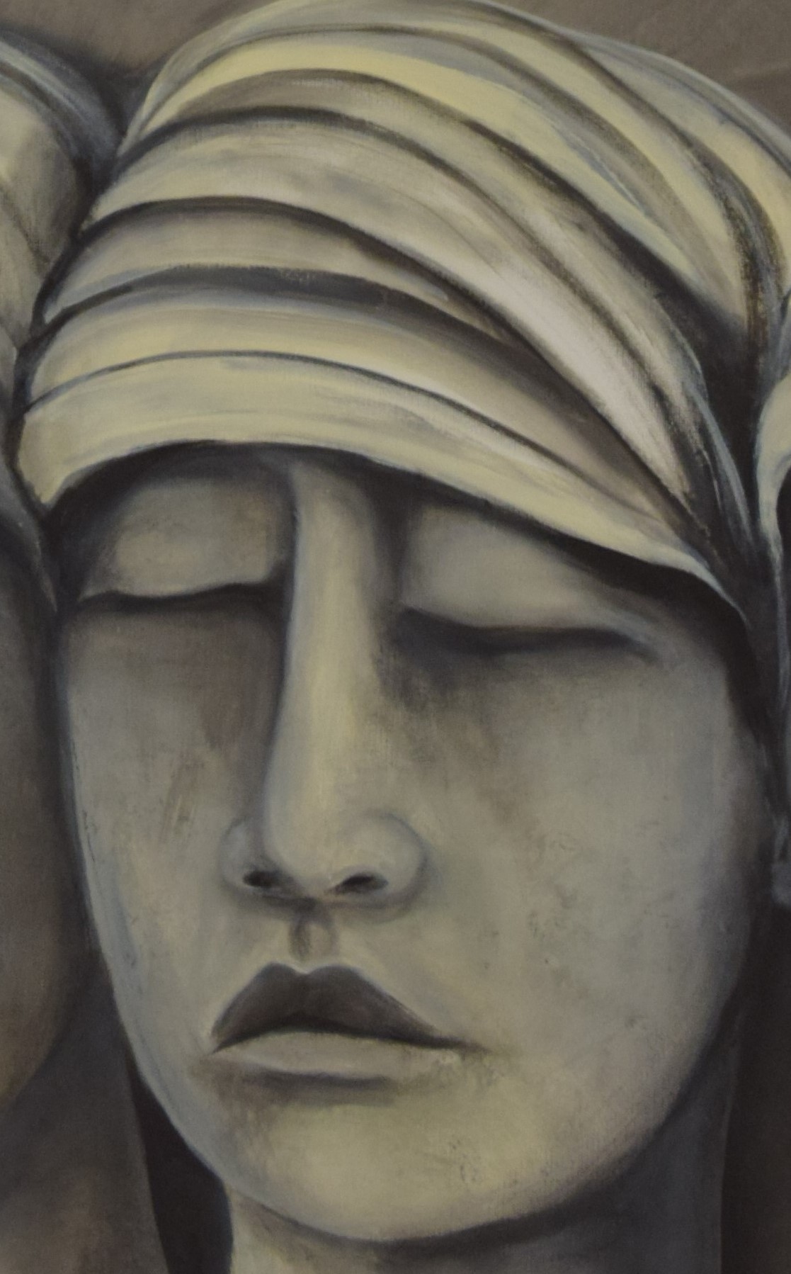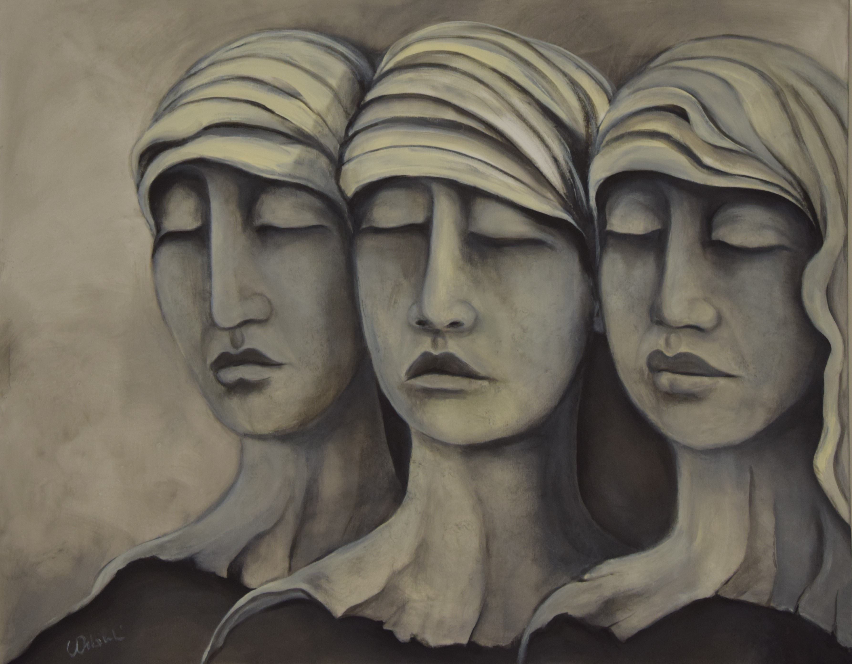 L’ARTISTA CREA FIGURE ICONICHE, CARICHE DI EMOTIVITÀ, CHE ESPRIMONO IL MISTERO DEL TEMPO, RECANDO NELLA LORO IMPERFEZIONE L’ENIGMA DEL VISSUTO. IL TEMA DELLE MOIRE VIENE RIPROPOSTO DALL’ARTISTA CON L’INTENTO DI ENFATIZZARE LA CONSAPEVOLEZZA DELL’ESSERE IN QUANTO PASSATO-PRESENTE-FUTURO.