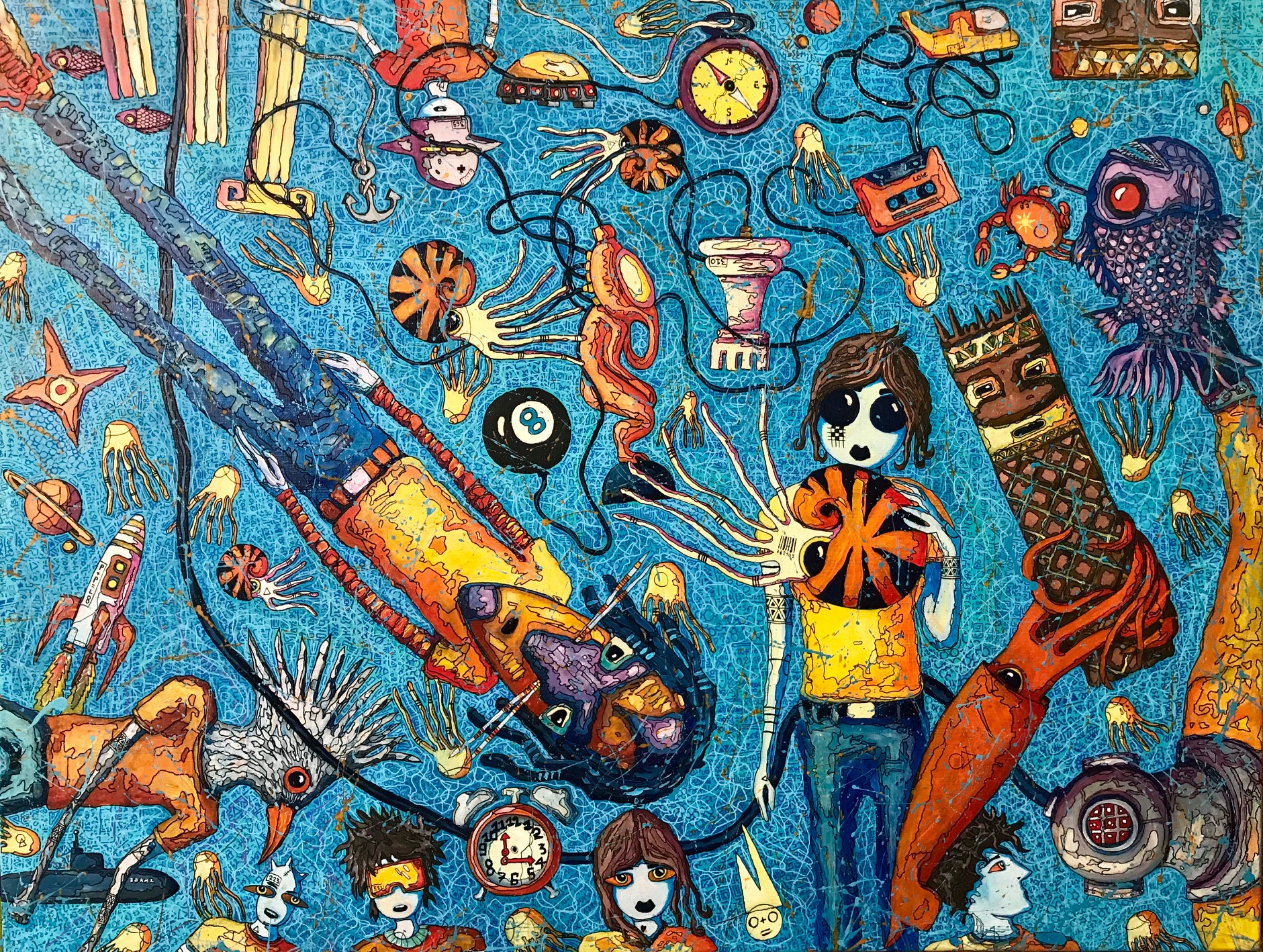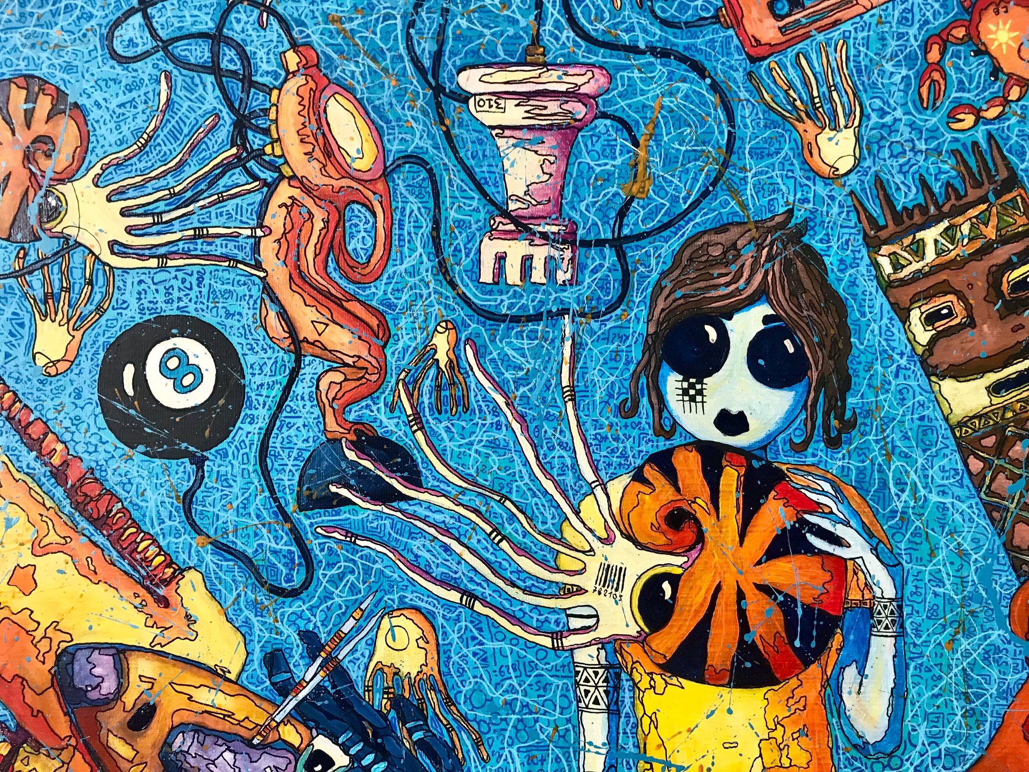BRICE POIRCUITTE IS A NEW CALEDONIAN ARTIST THAT PRODUCES ART WHICH CHALLENGES THE MARGINALISED ARTISTIC FORMS. IN ORDER TO DO THIS, HE PAINTS ON CANVAS IN A HIGHLY FIGURATIVE STYLE WITHOUT AN APPARENT MEANING REMINISCENT OF ARTISTS SUCH AS JEAN-MICHEL BASQUIAT, JACKSON POLLOCK OR ENKI BILAL. HE IS EQUALLY INFLUENCED BY NEW ART FORMS EMERGING FROM THE STREET AND POPULAR CULTURE, LIKE GRAFFITI, CARTOONS, SCIENCE-FICTION, ADVERTISING OR ROCK MUSIC.