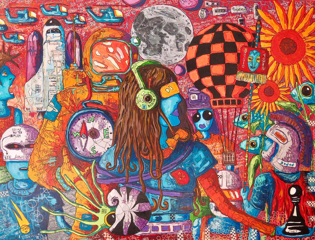 BRICE POIRCUITTE IS A NEW CALEDONIAN ARTIST THAT PRODUCES ART WHICH CHALLENGES THE MARGINALISED ARTISTIC FORMS. IN ORDER TO DO THIS, HE PAINTS ON CANVAS IN A HIGHLY FIGURATIVE STYLE WITHOUT AN APPARENT MEANING REMINISCENT OF ARTISTS SUCH AS JEAN-MICHEL BASQUIAT, JACKSON POLLOCK OR ENKI BILAL. HE IS EQUALLY INFLUENCED BY NEW ART FORMS EMERGING FROM THE STREET AND POPULAR CULTURE, LIKE GRAFFITI, CARTOONS, SCIENCE-FICTION, ADVERTISING OR ROCK MUSIC.
