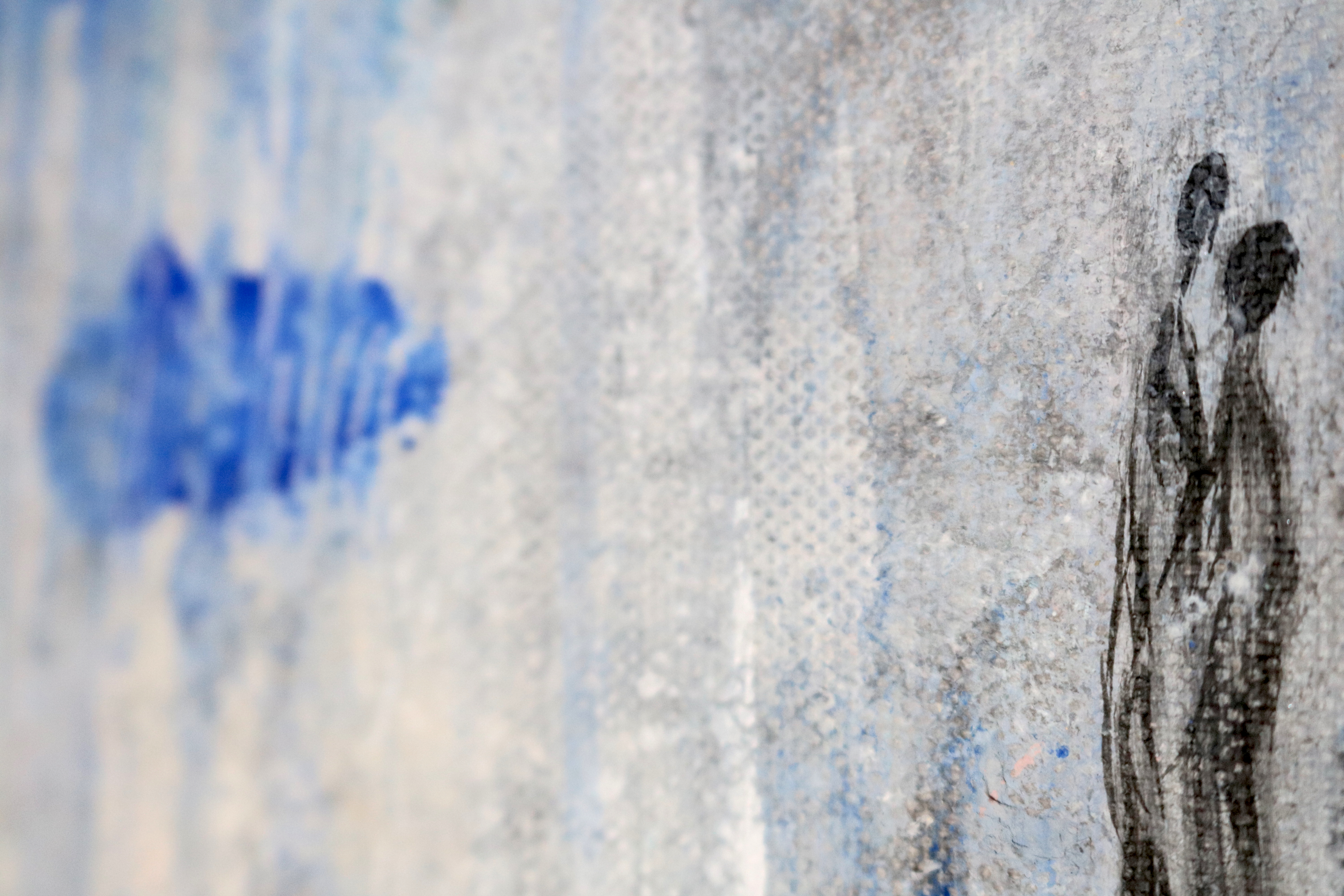 IN A WORLD OF ICE, WITH COLD AND HARSH SHADES AND 3D SHARP EDGES, A STYLIZED WEDDING TAKES PLACE. A STAR IS DESCENDING UPON IT, SYMBOLIZING LIGHT, FIRE, LIFE. IT IS A PROMISE MADE TO THE PRESENT, A PROMISE THAT DEFINES ITSELF AS LOVE FLOWING FROM HEAVEN (SYMBOLIZED BY THE TWO LINKED FIGURES), DEFINING THE FUTURE.