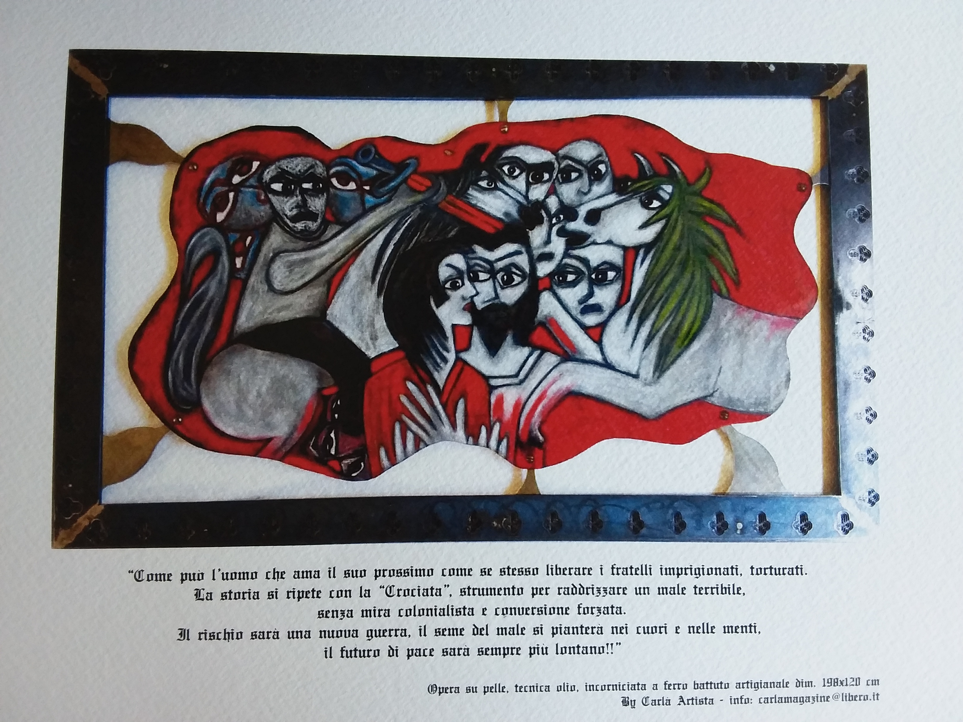 SU PELLE A OLIO LAVORAZIONE MANUALE CON CORNICE IN FERRO BATTUTO