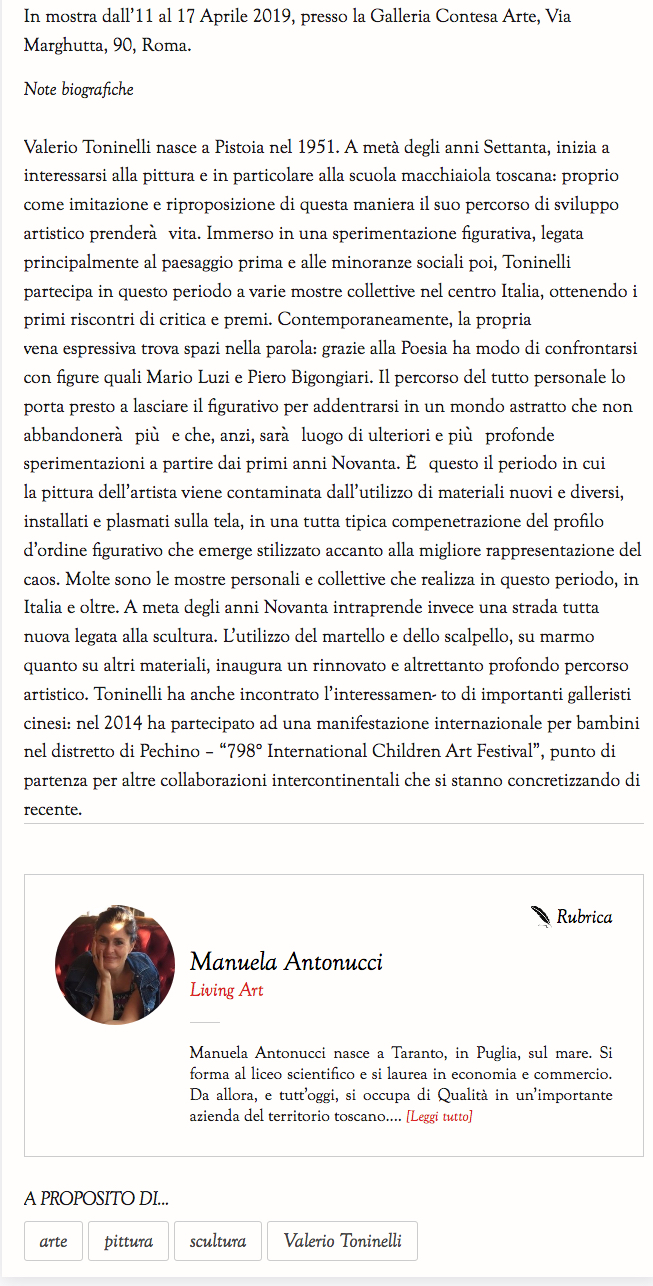 LA VOCE DI NEWYORK, MANUELA ANTONUCCI, MOSTRA VALERIO TONINELLI