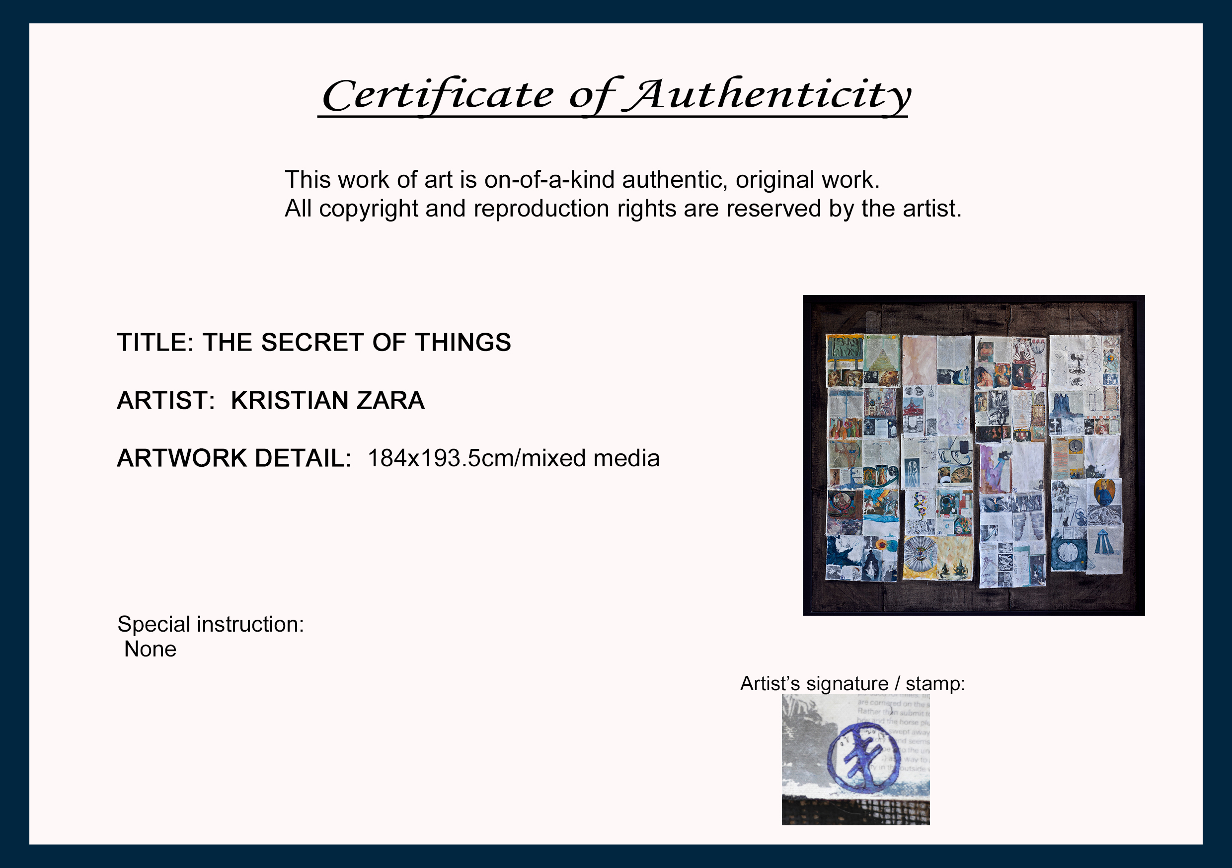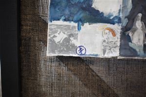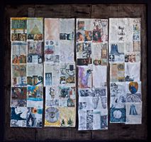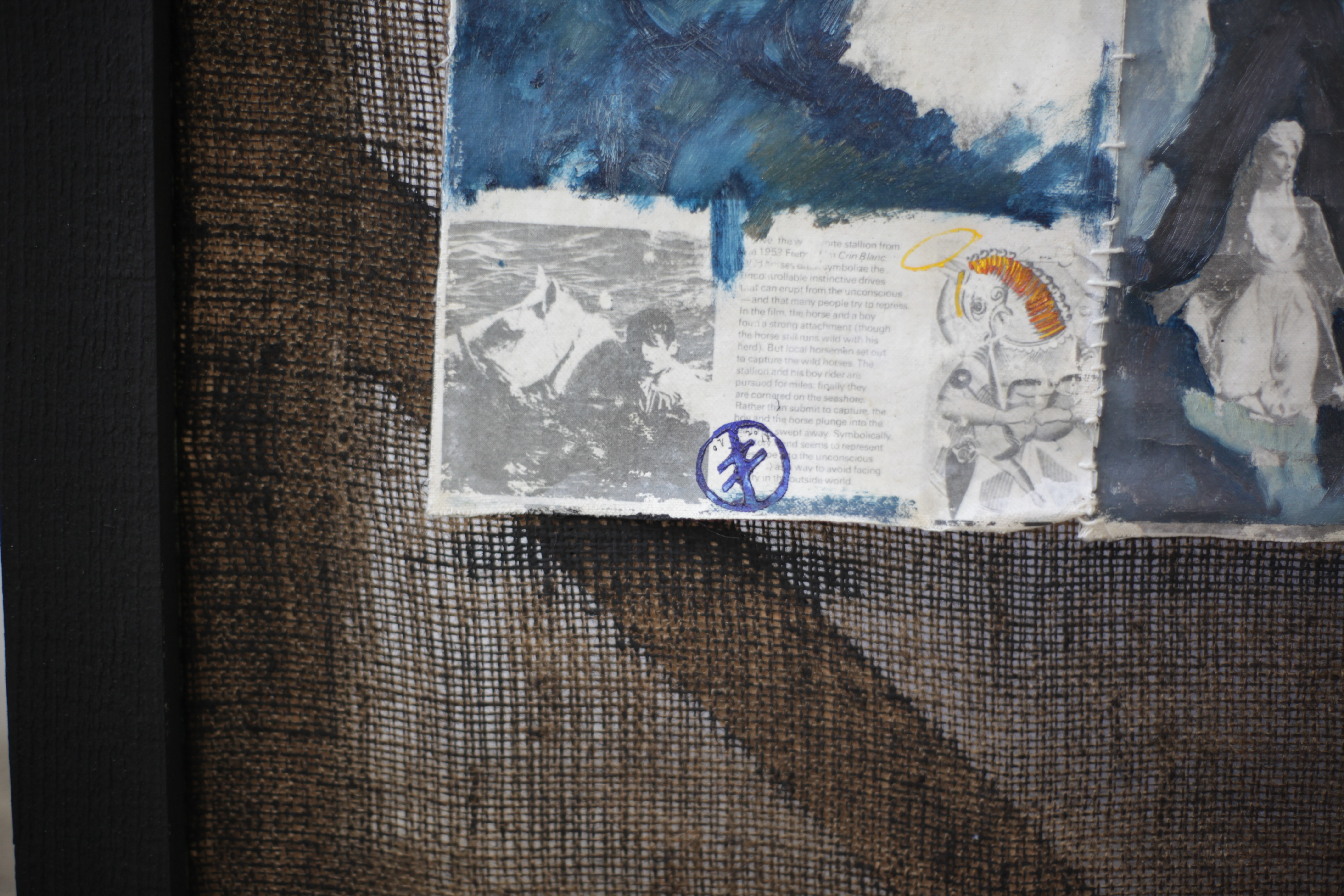 THIS WORK IS MADE BY 60 PIECES OF A4 SEWN TOGETHER AND COMPOSED IN THREE DOUBLE COLUMN WITHIN A FRAME 184X193.5CM DIMENSIONS. IT WAS INSPIRED BY C. G. JUNG'S MAN AND HIS SYMBOLS. THIS WORK IS AN OUTCOME OF PSYCHOANALYTIC AND ARTISTIC INTERPRETATION THROUGHOUT MY MFA ARTISTIC RESEARCH IN 2017. I HAVE USED MIXED MEDIA TECHNIQUE. IT HAS BEEN WORKED AGAIN AND FINISHED IN 2019.